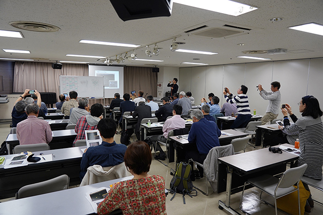 なお講座の資料は、昨年の受講者のご要望に応じてA4サイズ1枚に2画面(従来は4画面)で印刷し、大きく見やすくしたものを配布しました。