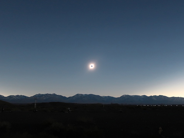 低空の皆既日食であったことから本影錐の動きもはっきり見ることができ、肉眼でもシャドウバンドが確認された。何回も日食遠征の経験がある参加者からも、「これまでの日食のなかでもベストコンデションで見ることができた」との声が聞かれた。欠けた太陽は、復円することなくアンデス山脈へと沈んでいった。