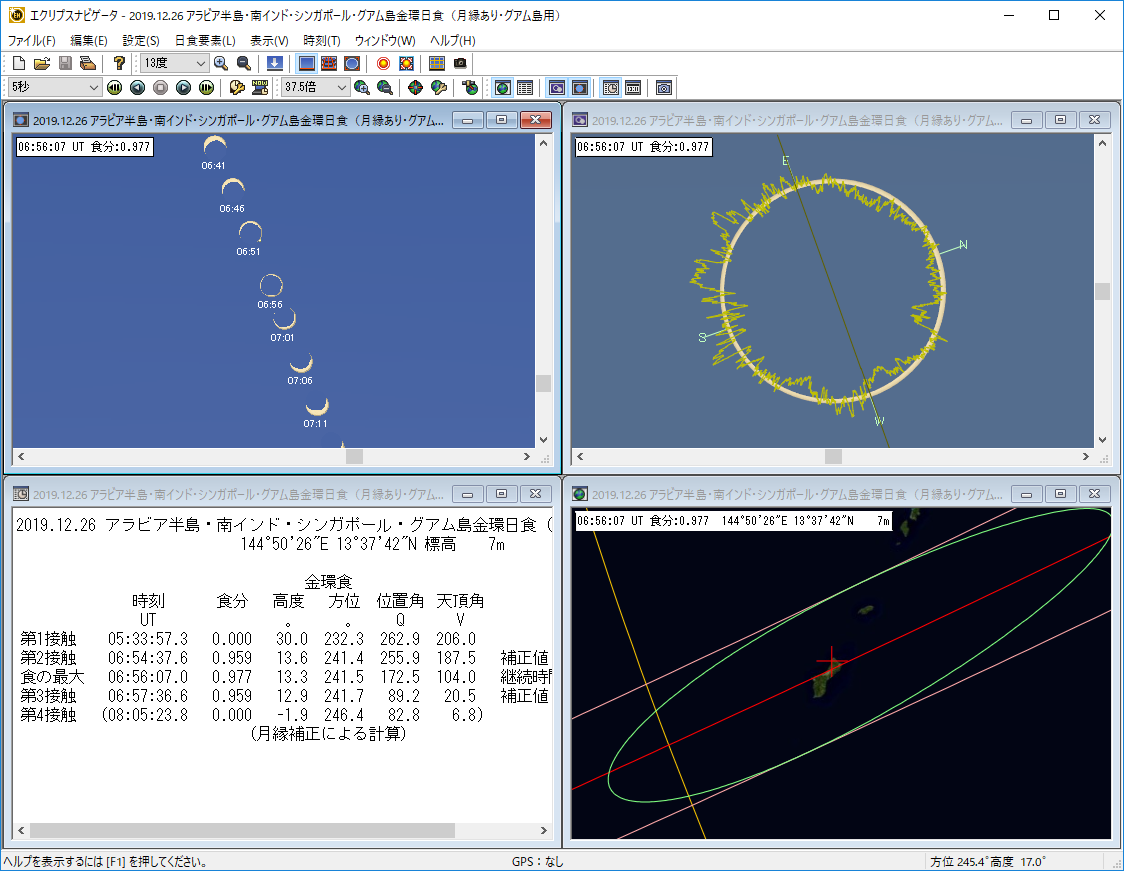 観測地のアラブ首長国連邦とグアム島では、今回の「エクリプスナビゲータ4」の日食要素から月縁プロフィールを呼び出すことができます。