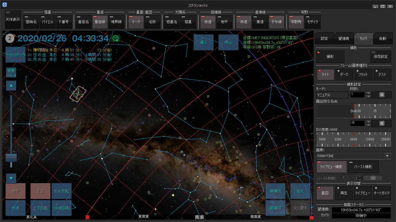 星図の日時を変えて事前に撮影計画を立てられます。