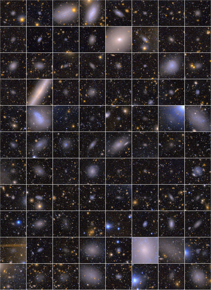 選ばれた銀河は9つで、地球から約5000万~8000万光年の距離にある。すばる望遠鏡の超広視野主焦点カメラ「ハイパー・シュプリーム・カム(HSC)」を使って、それぞれの銀河について衛星銀河が分布する領域をくまなく撮影し、画像の中から無関係な背景の銀河が映り込んだと思われるものを除外していった結果、確実に衛星銀河と見なせる天体が51個(候補まで含めると93個)検出された。