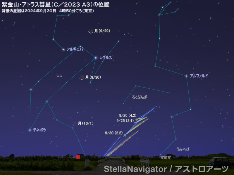 9月下旬から11月にかけて、紫金山・アトラス彗星(C/2023 A3; Tsuchinshan-ATLAS)が明るくなると予測されている。
