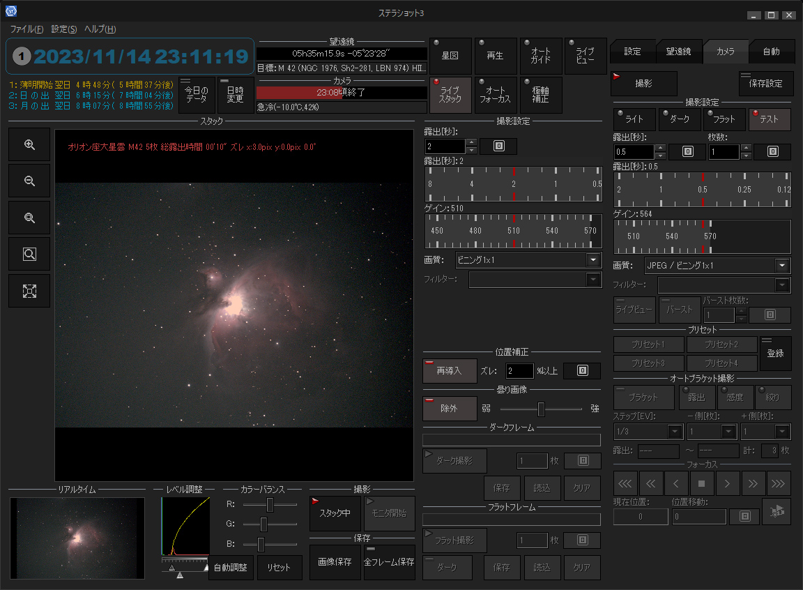 「ステラショット3」3.0bアップデータでは、ニコン Z8 / Z9、キヤノン EOS R6 Mark II / R7 / R8 / R10 / R50 / R100、キヤノン EOS Kiss X10に対応しました。また、カメラ制御やオートガイド、ライブスタックなどでの不具合修正や機能改善など、多くの修正を行っています。