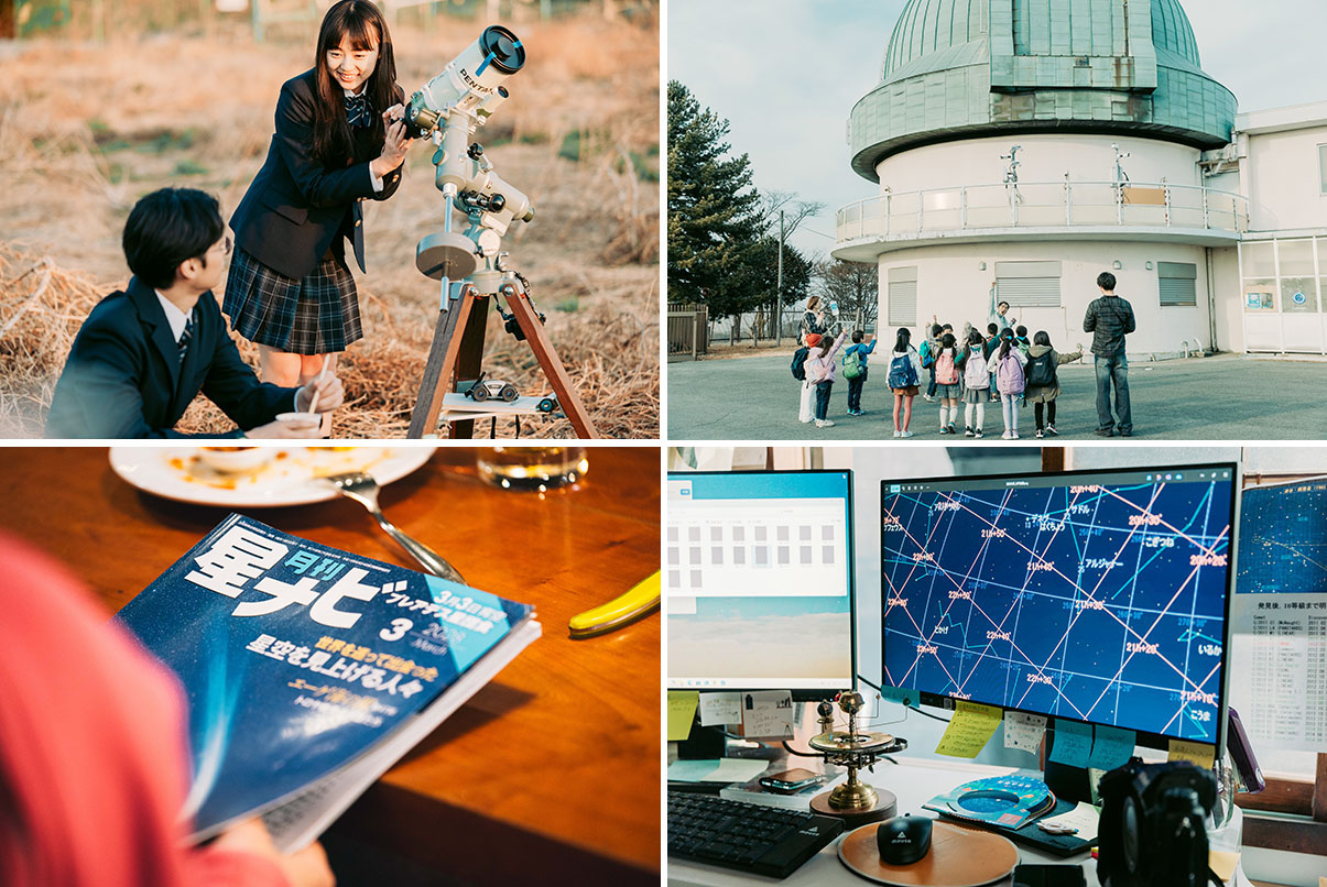 星ナビ編集部ではさらに天文資料やポスター、天文小物などを提供。天文シミュレーションソフトの開発を行っているという設定のオフィスセットを飾り、物語の存在感を高めるのに一役買っている。また、サイトロンジャパンも望遠鏡機材協力・監修に加わり、撮影現場で望遠鏡のセッティングや覗き方などを指南した。