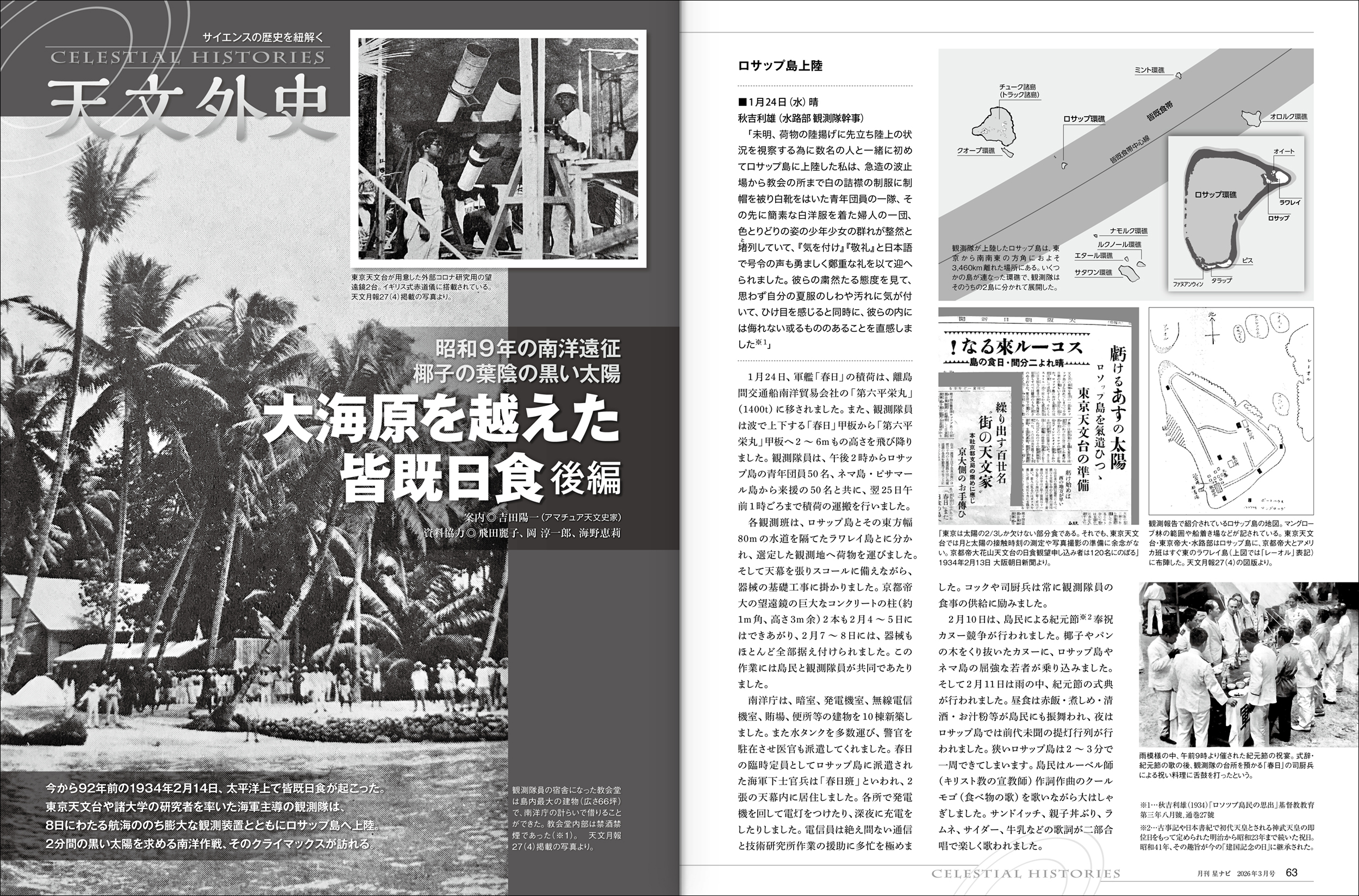 昭和9年、海軍と天文台が挑んだ皆既日食観測ミッション。後編ではいよいよロサップ島に上陸。そこで待ち受けていたのは雨続きで進まぬ機材設営でした。遠征隊は無事日食の日を迎えられるのでしょうか?