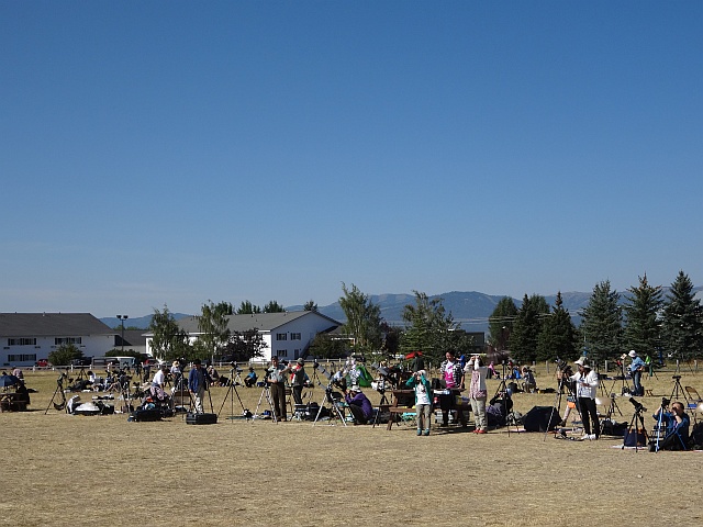 ティトンビレッジでの日食観測風景。クリックで画像拡大(撮影:アストロアーツ 川口雅也)