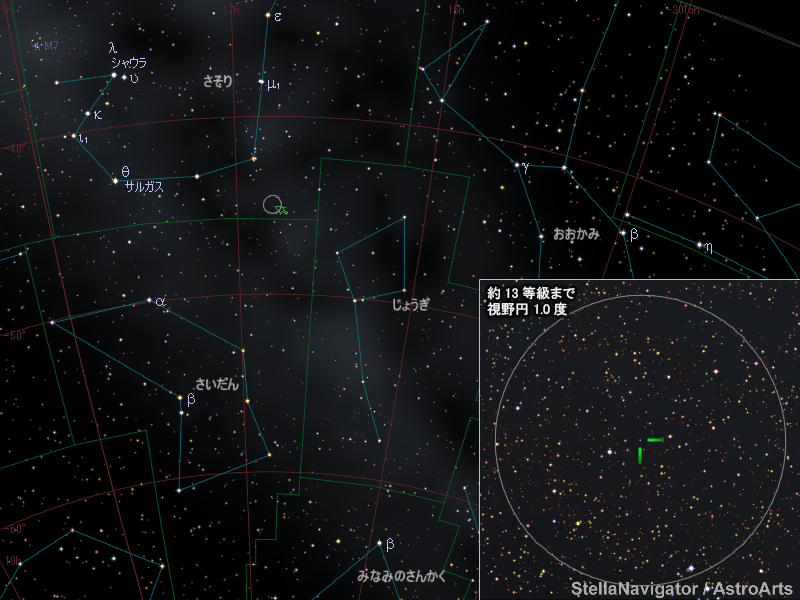 さそり座の新星の位置。画像クリックで星図拡大(「ステラナビゲータ」で星図作成)