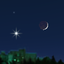 7月16日の夕方から宵、西の低空で月齢3の細い月と金星が接近して見える。