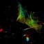重力レンズ効果を受け大きく引き伸ばされた、はるか遠方に存在する銀河の姿をハッブル宇宙望遠鏡がとらえた。復元された銀河の像には若い星の群れがあちこちに見られる。