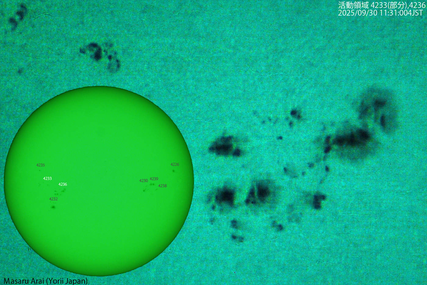 SE120L+DMC-GH1よる、活動領域 4236( Dai/Dai ) です。 NICT情報:活動領域4232などでMクラスフレアが数回発生し、最大のものは、活動領域4226で9月30日18時40分JSTに発生したM2.7/1Nフレアでした。