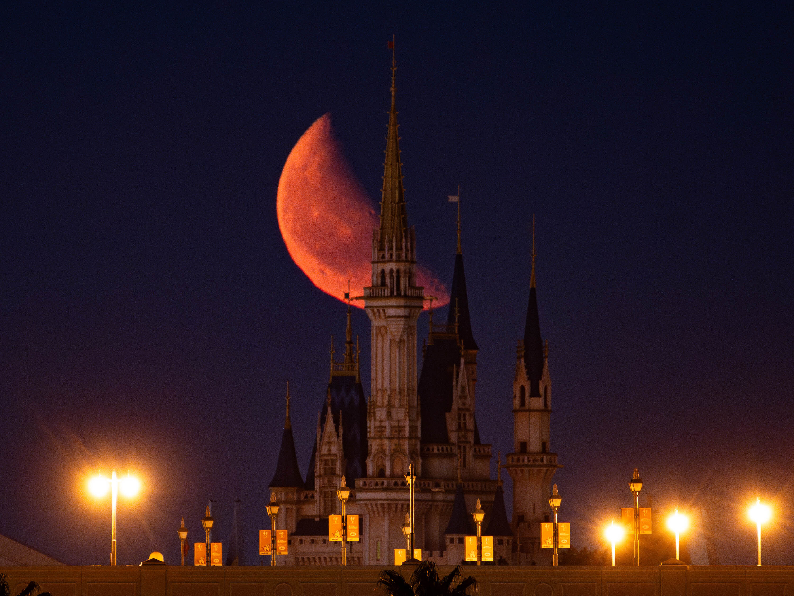 佐藤 純哉月齢23.2の月と東京ディズニーランドのシンデレラ城 葛西臨海公園から