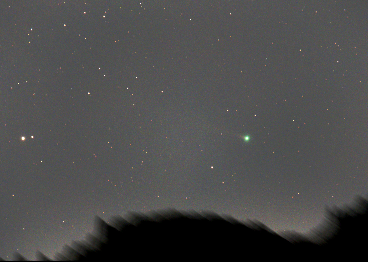 久しぶりの快晴。西空に沈むスワン彗星に尾が写り始めました。