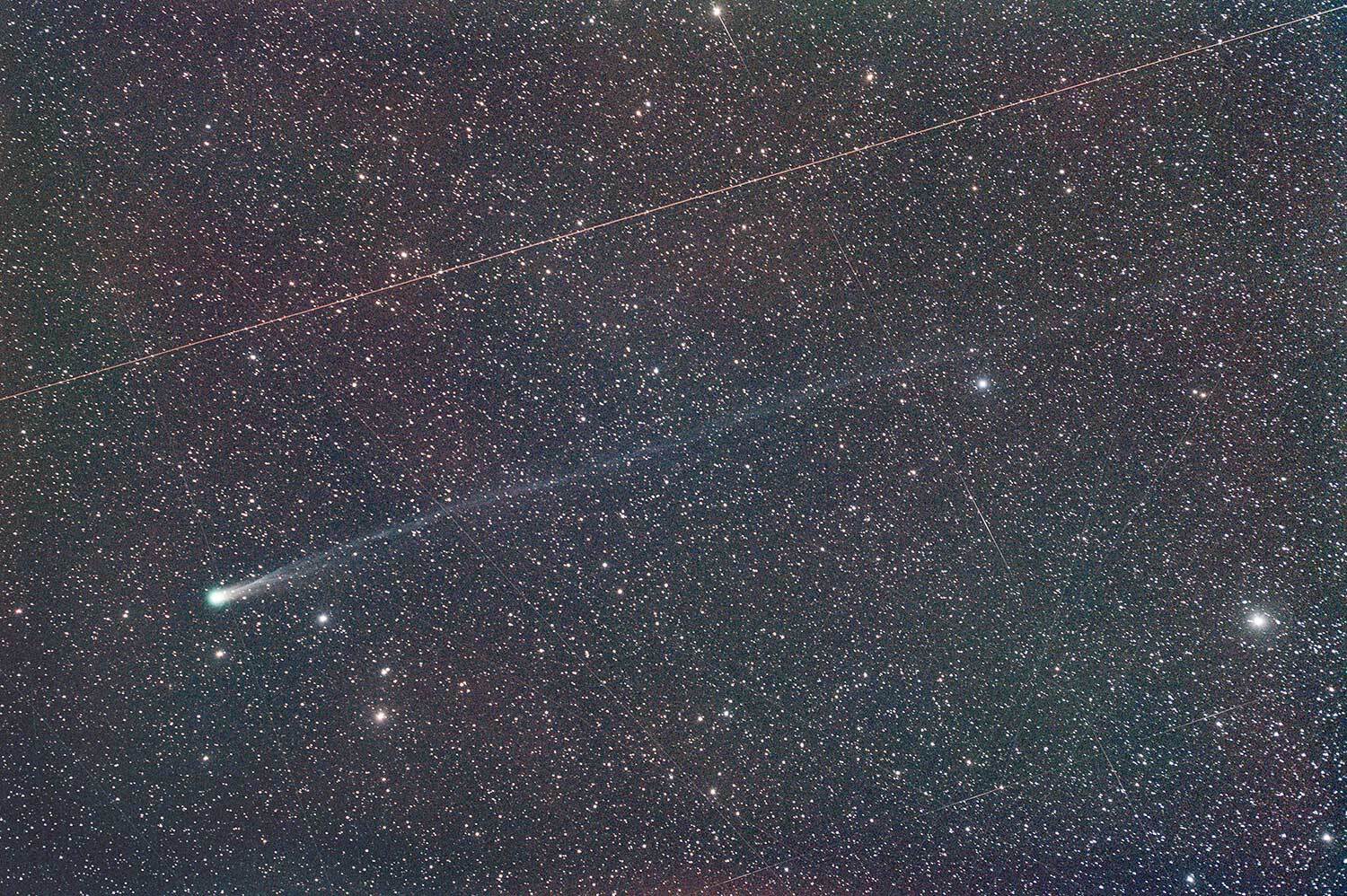 阿蘇外輪山的石原野での撮影です。うっすらと張るモヤが邪魔をしました。尾はこの画像で端まで9度写っています。120秒露出6枚から強調、トリミングなし。