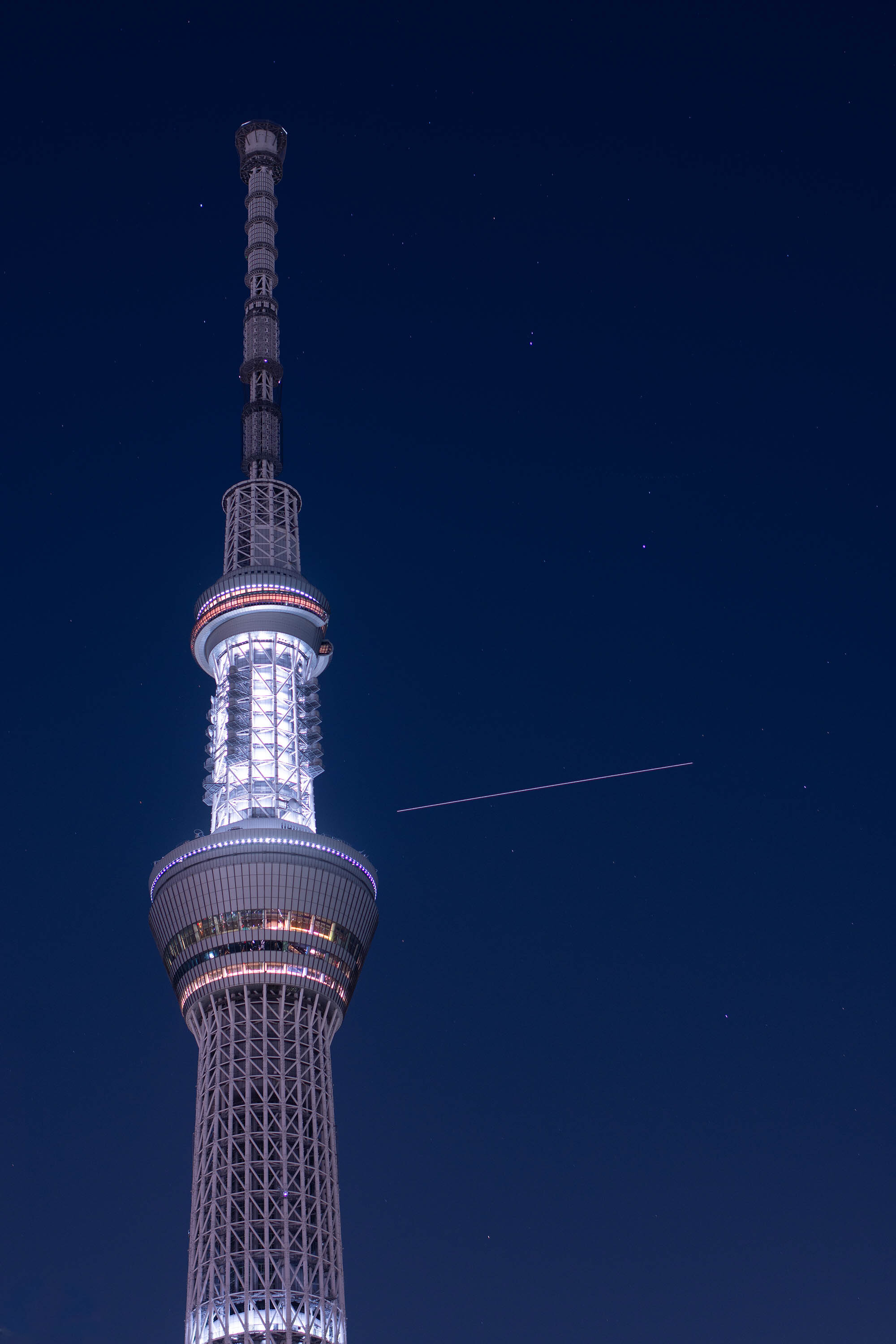 佐藤 純哉大西卓哉さんらの国際宇宙ステーション(ISS)の光跡と東京スカイツリー