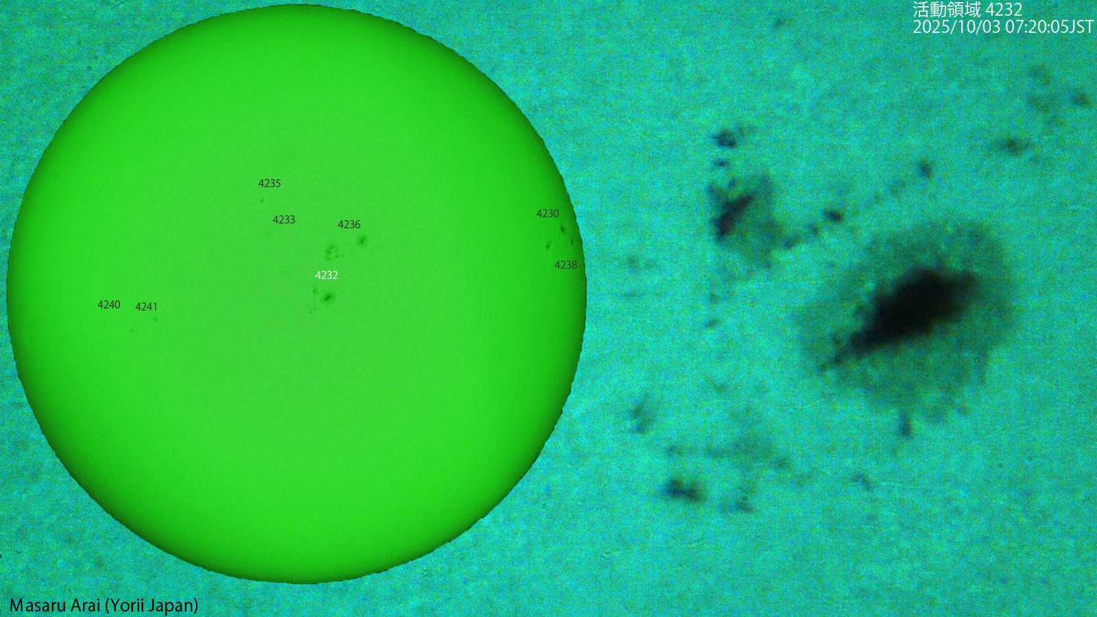 SE120L+DMC-GH1よる、活動領域 4232( Dhi/Dhi ) です。 NICT情報:活動領域4226で、2日11時9分JSTにM1.2/SFフレアが発生しました。