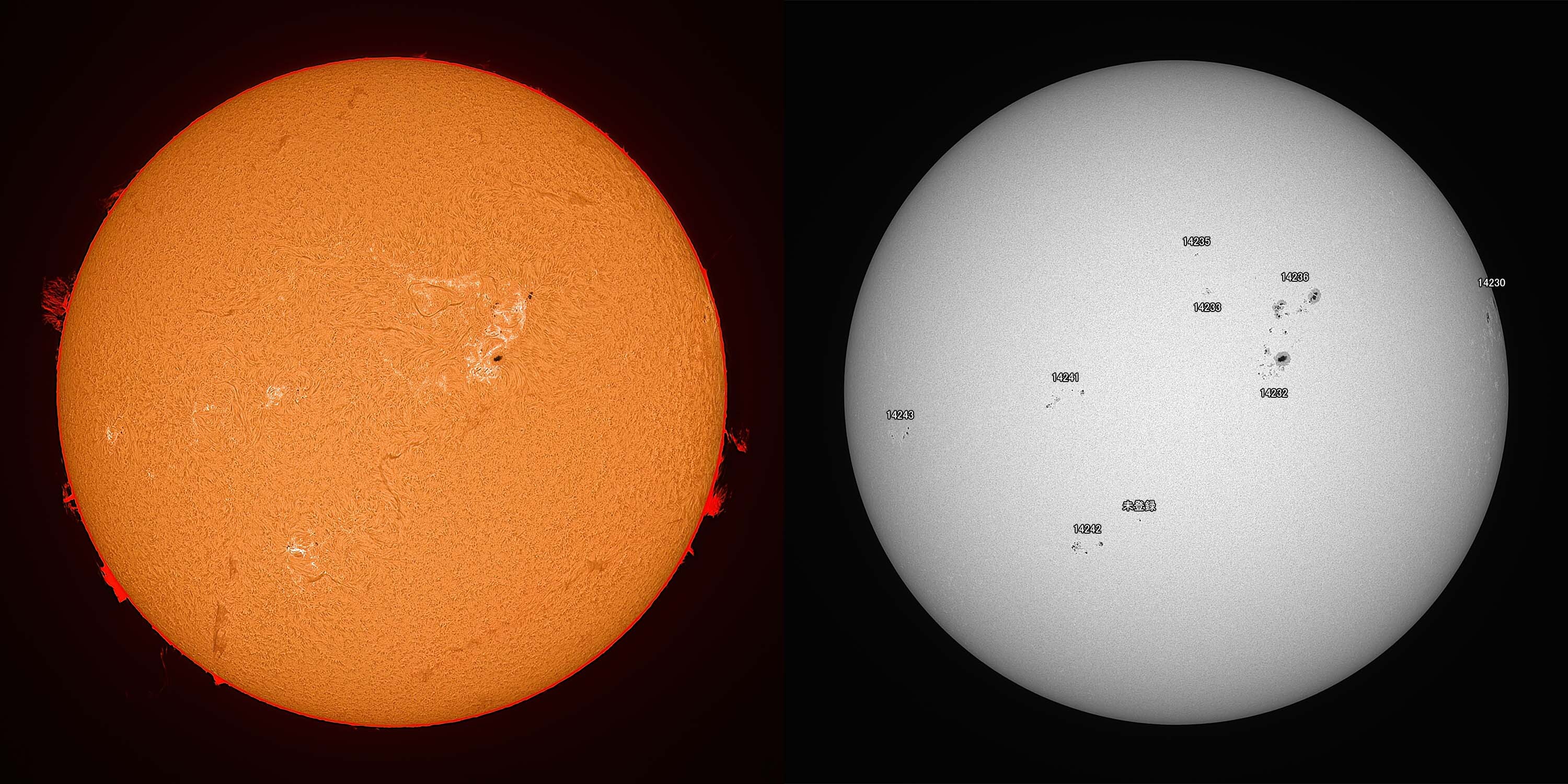 光球面:FireCapture、ROI 3600x2400、Gain 100、2.1msec x1000、撮影時間 31秒/プロミネンス:FireCapture、ROI 3600x2400、Gain 300、2.1msec x1000、撮影時間 31秒