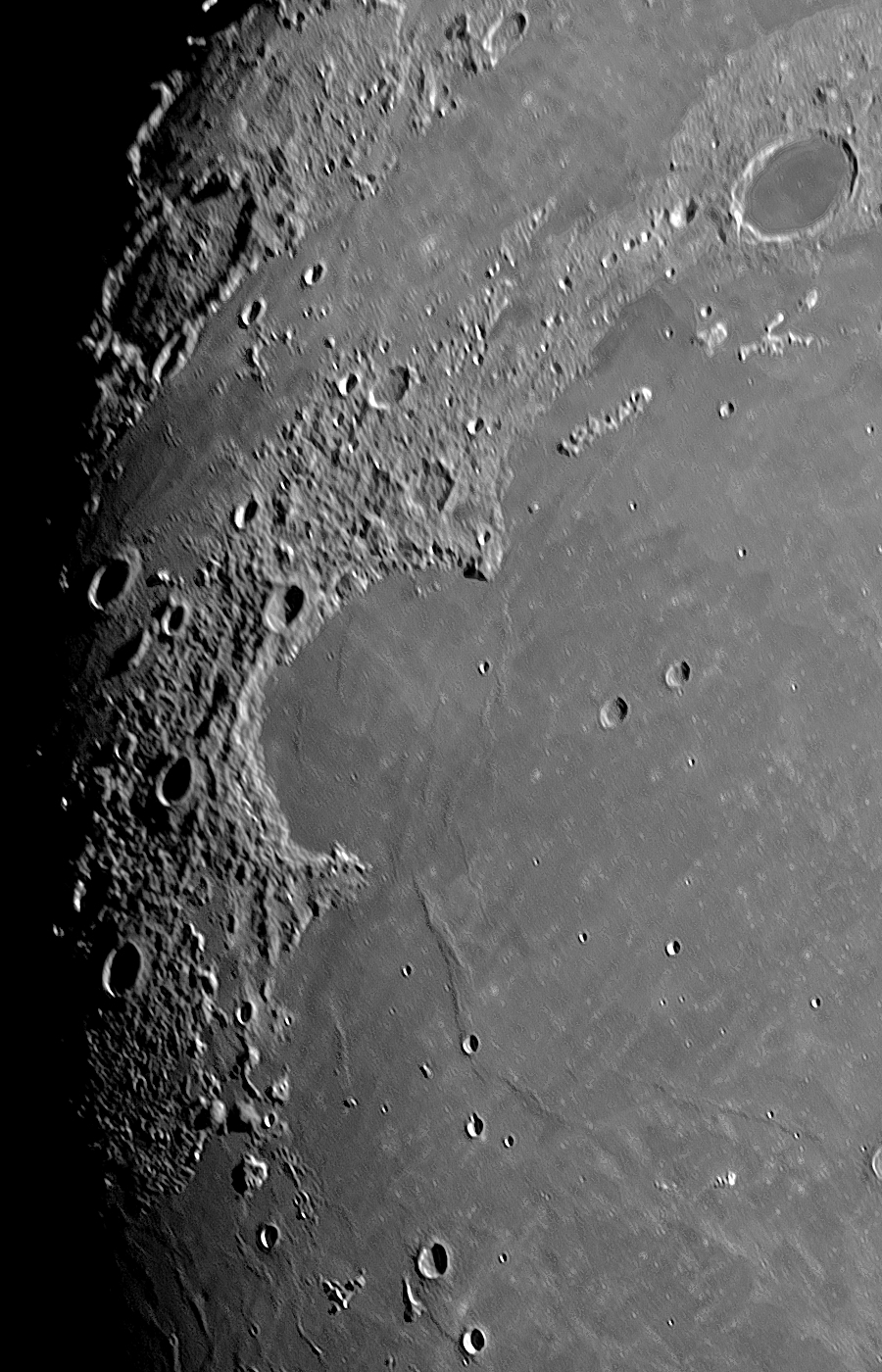 シーイング:3.5~4/5 透明度:3/5 よく見ると、虹の入江の湾内に微小クレーターが見えます。