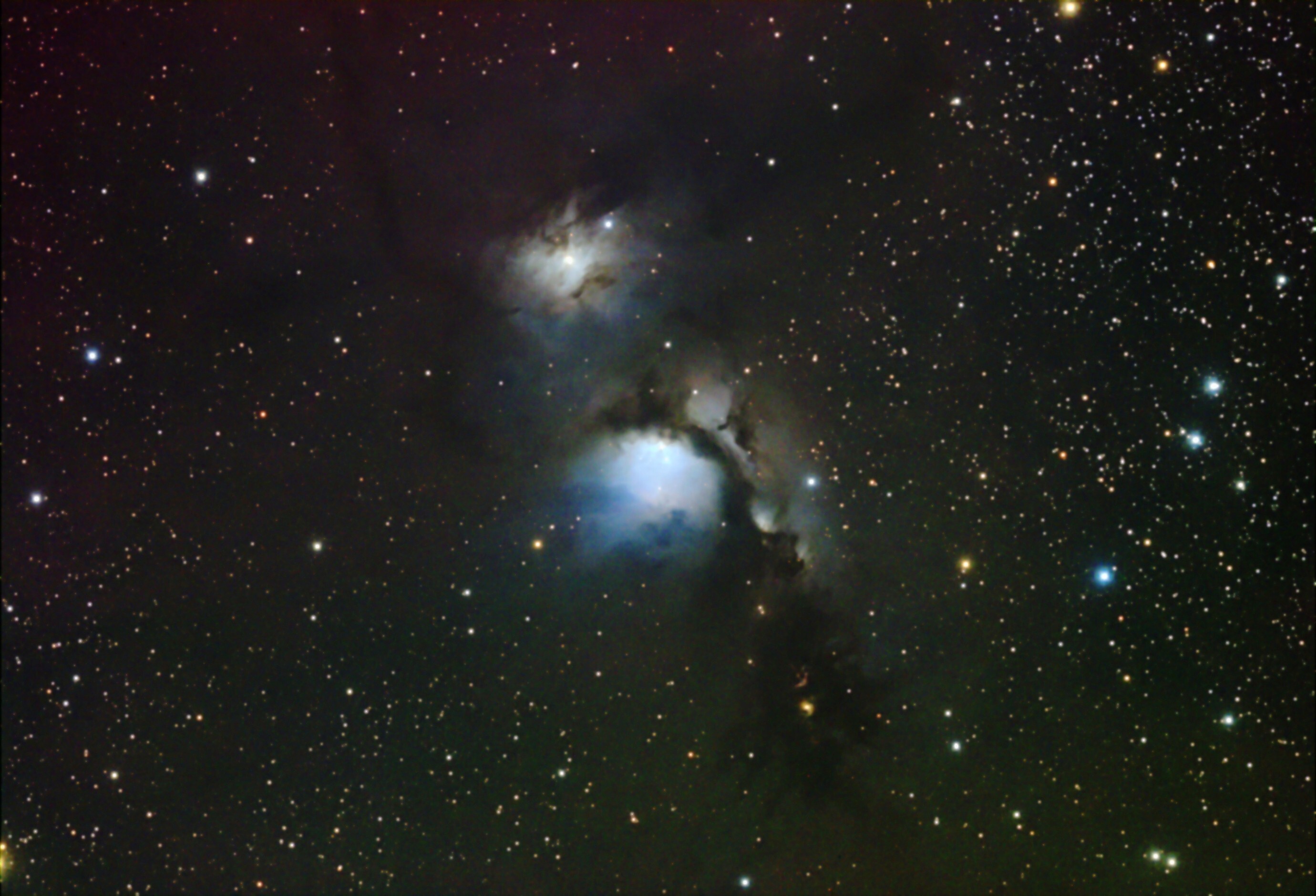M78を初めて撮影しました。薄明までなので露出を伸ばせませんでした。左上の赤いのは取れないカブリではなくバーナードループの一部と信じております。