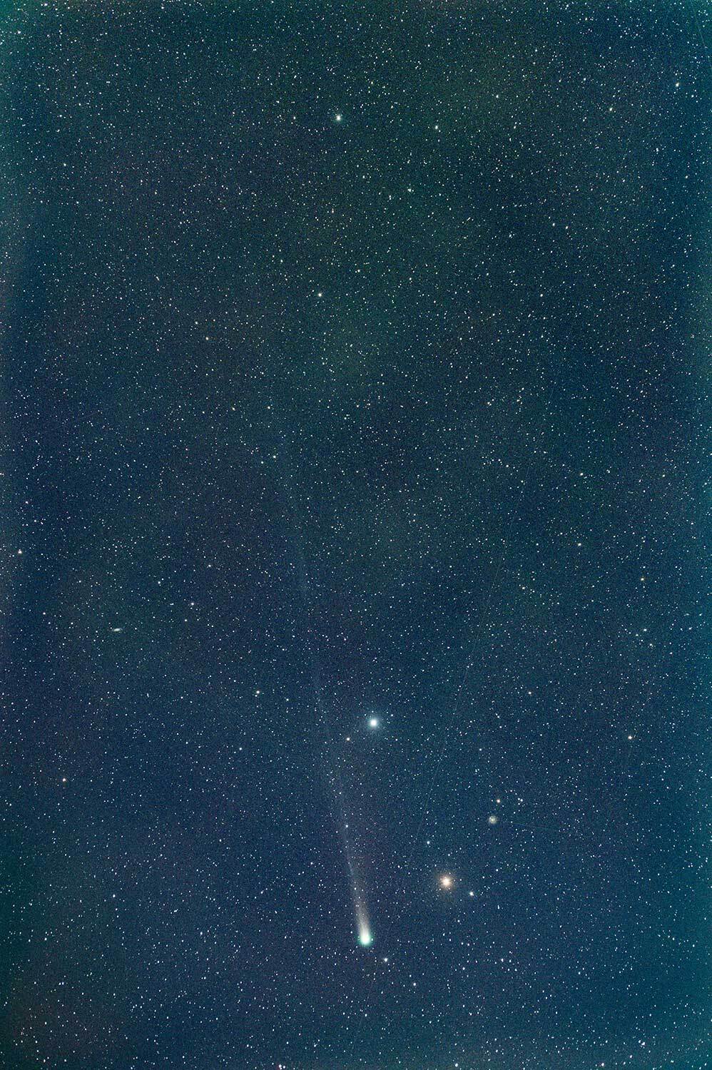 阿蘇外輪山的石原野での撮影です。月明かりもですが、薄いモヤが邪魔をしました。尾はこの画像で約6度写っています。60s10枚から強調、トリミングなし。