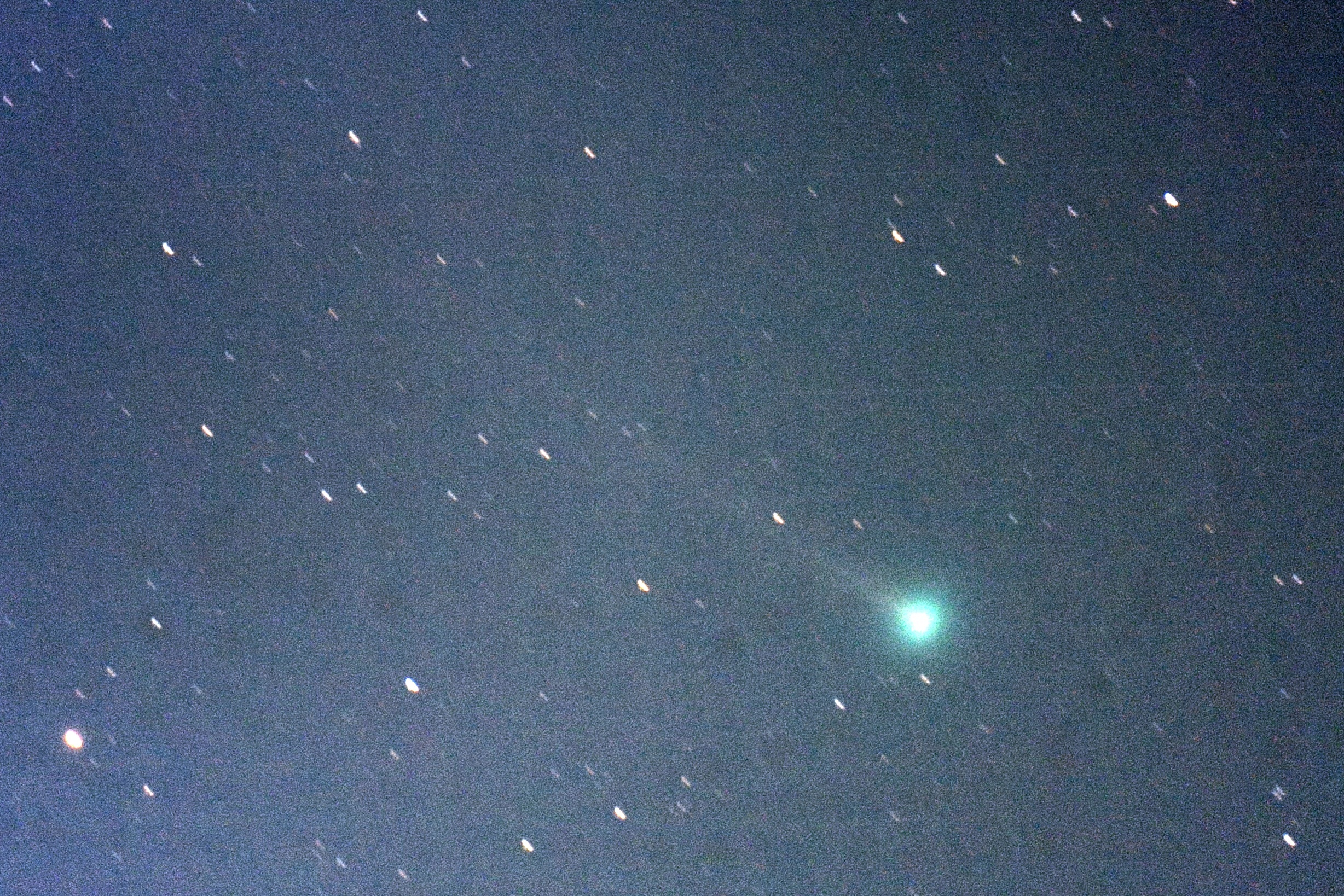 高度が高くなってきて綺麗な晴れ間もできて、やっとまともに撮れました。 明るさは一週間前より落ちてるみたいで彗星は暗かったように感じました。 でも尾は何とか出せました。