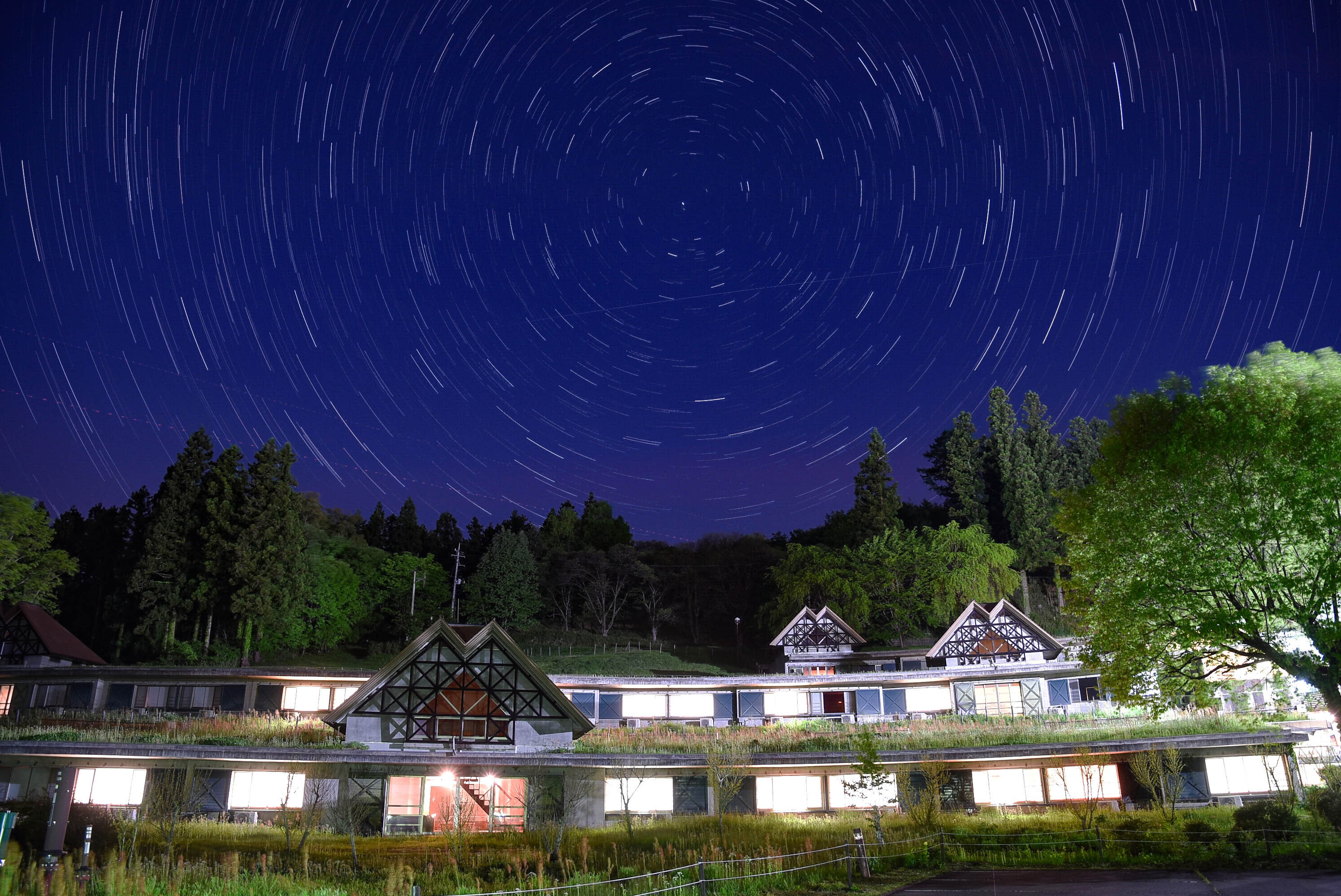今年前半の投稿し忘れ。 5月に仕事でここに宿泊。晴れたら星空を撮ろうと。しかし満月。 夕食後はもう月出の後、月が高くなる前に撮りました。 合成後、星空と地上風景の明るさのバランスを整えました。