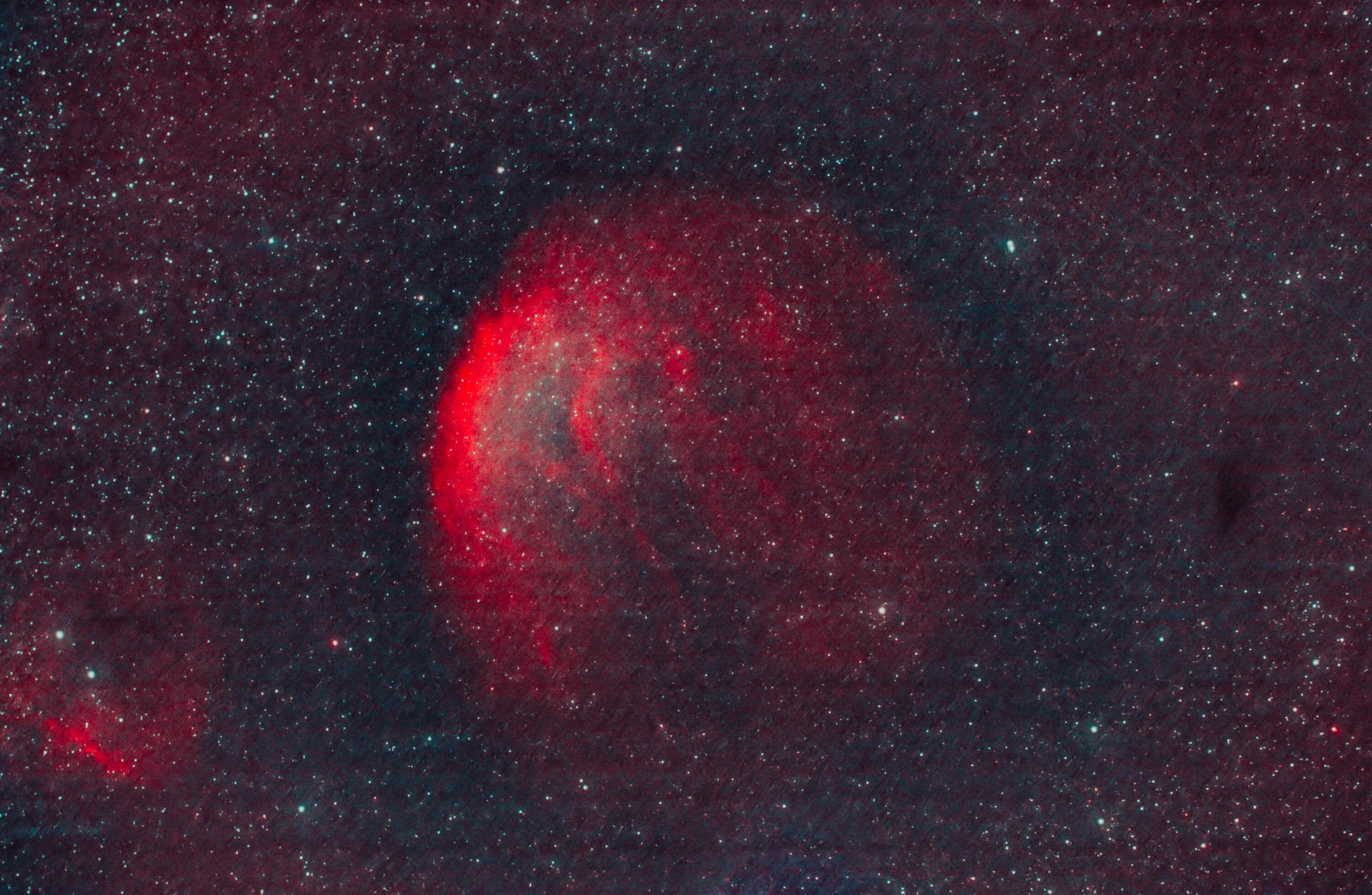カペラ付近の惑星状星雲を撮影しました。 淡くて無理やり炙り出したら画像が荒れてしまって酷いことになりました。 もっと露光時間を増やさないといけないです。