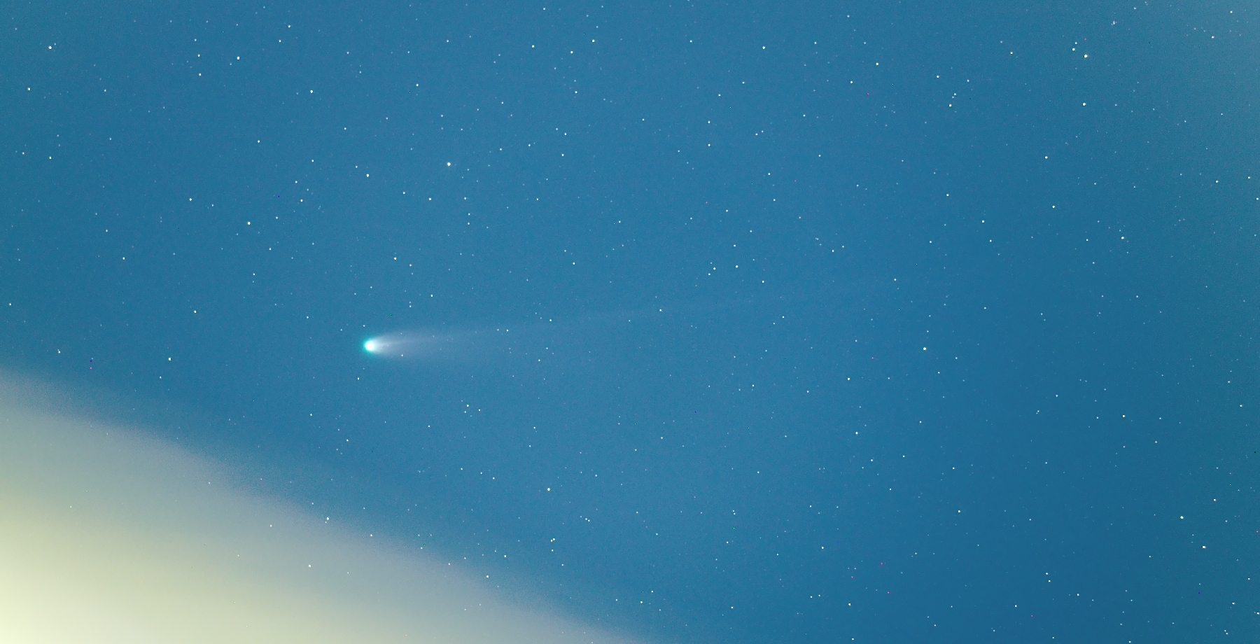 天候が回復してやっとレモン彗星初観測です。 長い尾が薄明と光害に埋もれそうです。この後雲に隠れてしまいました。