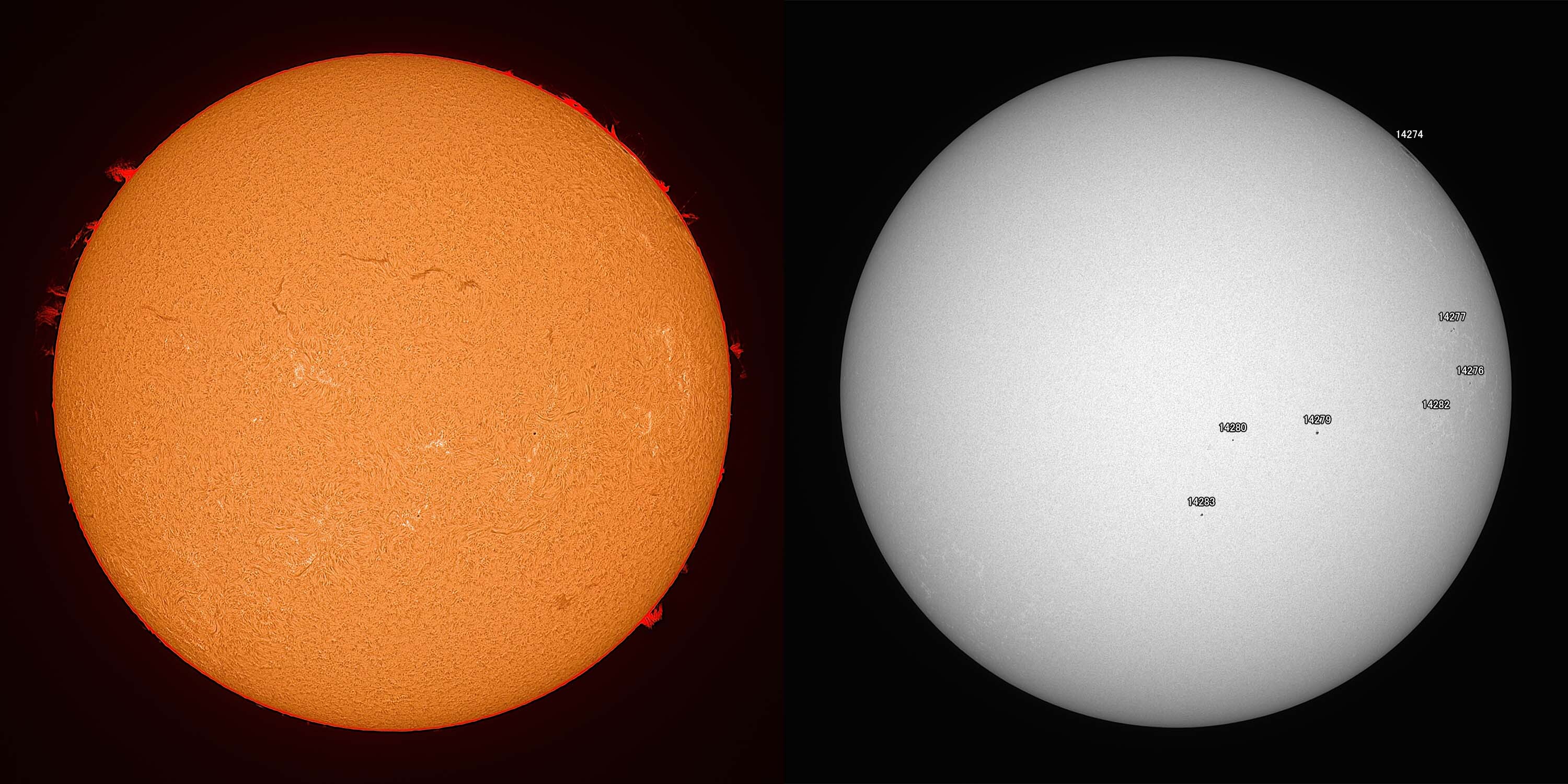 光球面:FireCapture、ROI 3600x2400、Gain 100、2.1msec x1000、撮影時間 31秒/プロミネンス:FireCapture、ROI 3600x2400、Gain 300、2.1msec x1000、撮影時間 31秒
