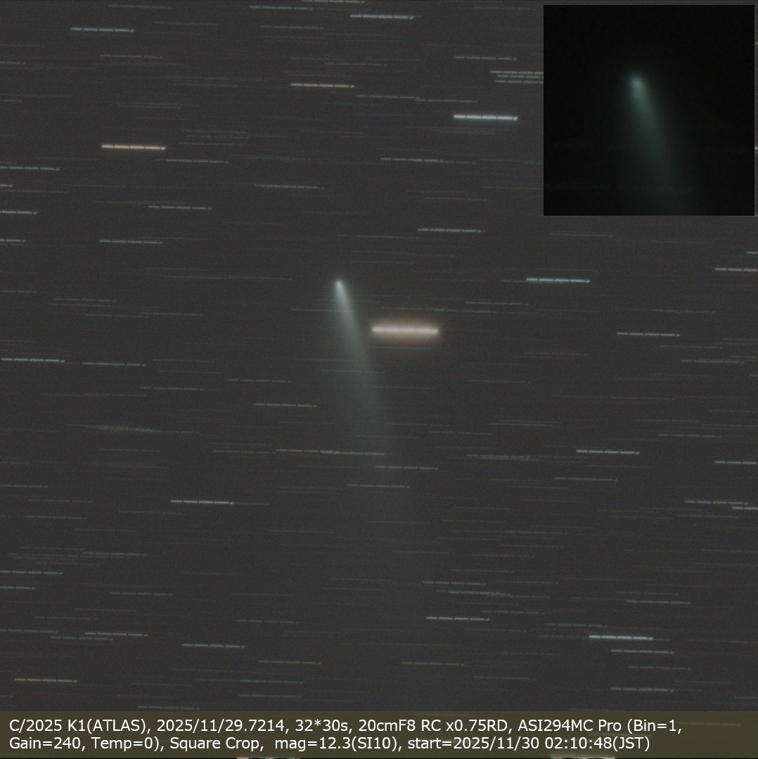 C/2025 K1(ATLAS), 2025/11/29.7214, 32*30s, 20cmF8 RC x0.75RD, ASI294MC Pro (Bin=1, Gain=240, Temp=0), Square Crop, mag=12.3(SI10)