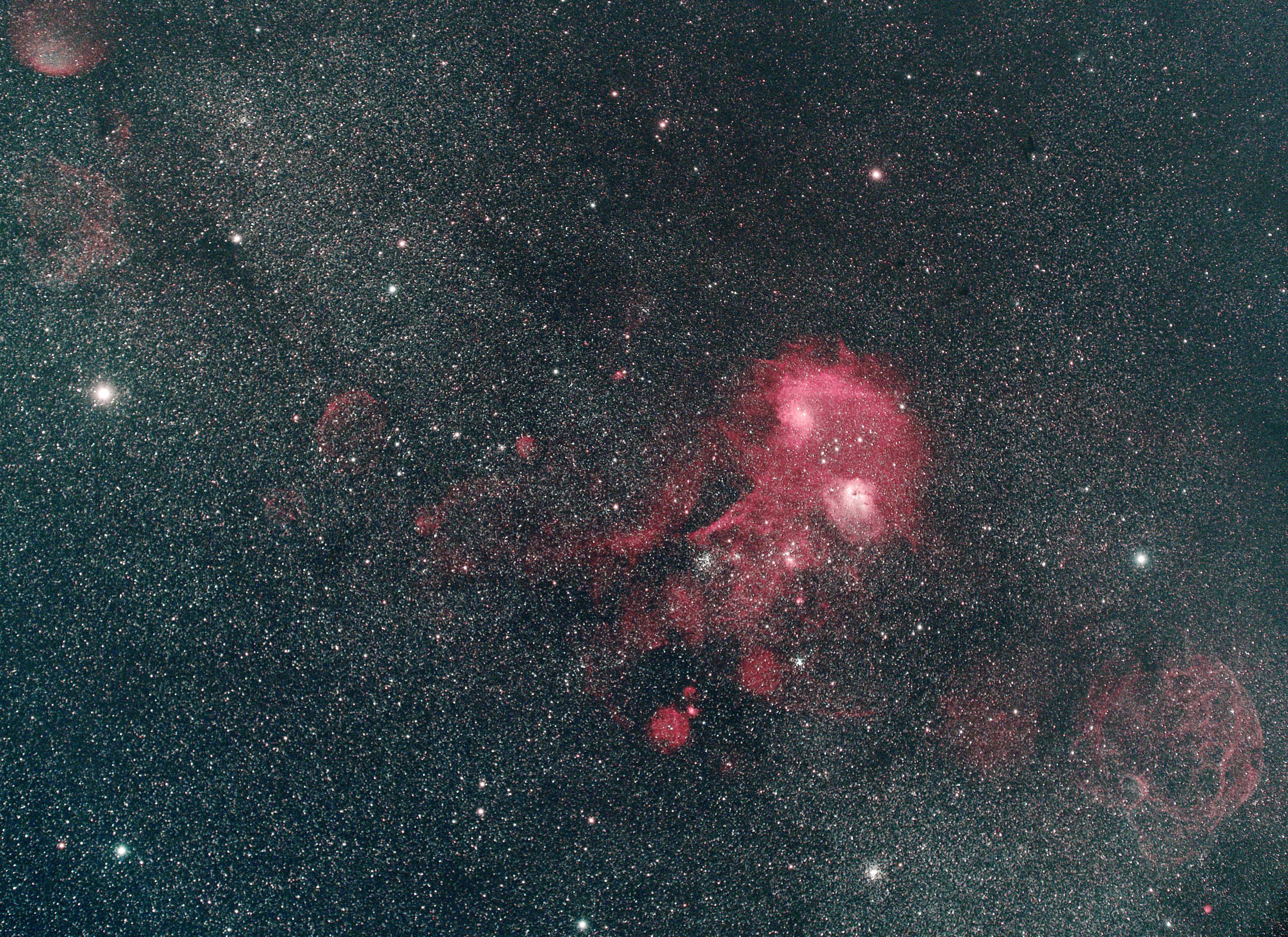 フルサイズの6200MC Proで撮影したぎょしゃ座のほぼ全景です。 スパゲッティ星雲や惑星状星雲Sh2-216辺りまで撮影できました。