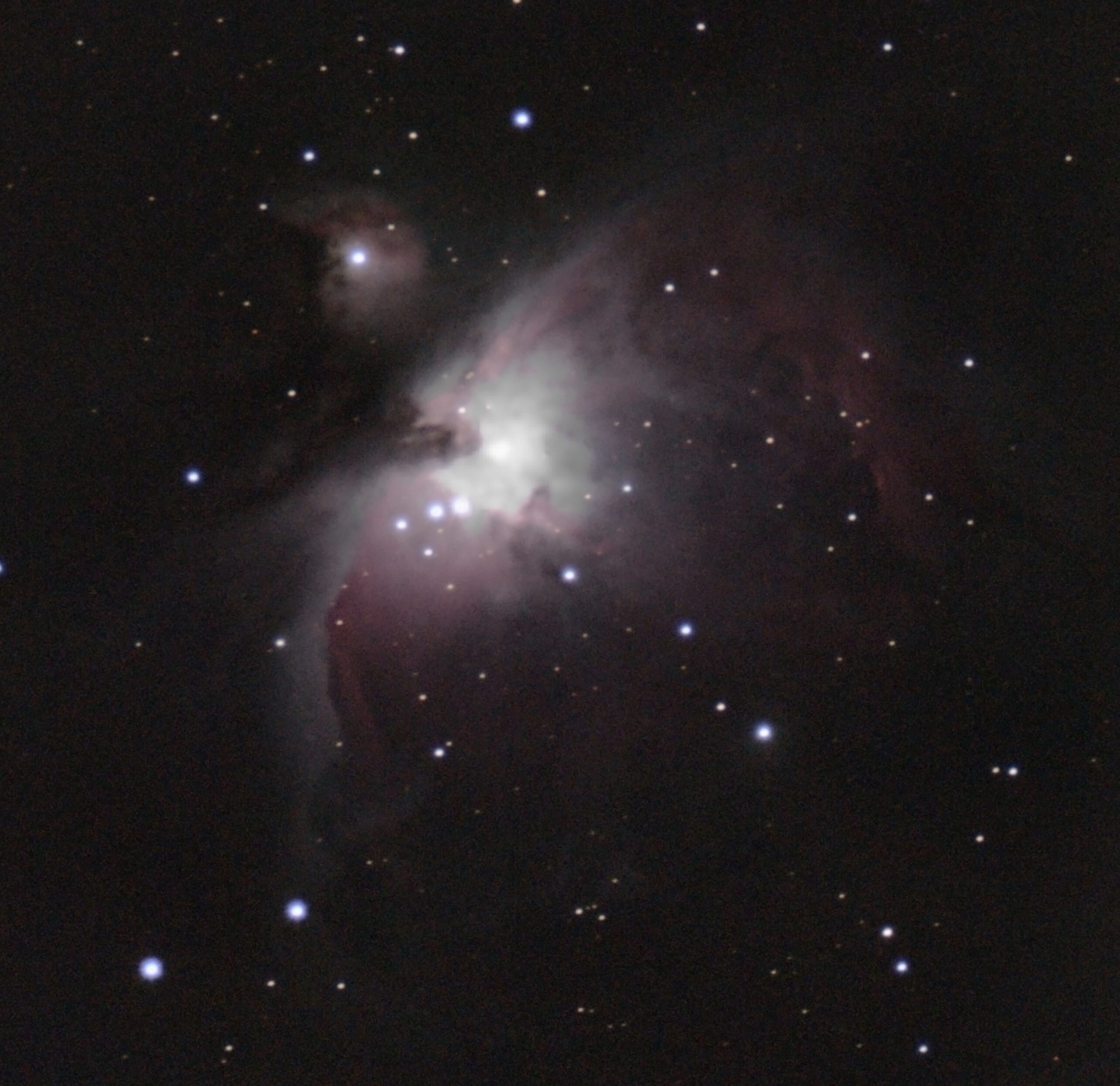 オリオン星雲を屈折望遠鏡で撮影してみました。今までは300mmレンズ(APS-C 450mm)での撮影でしたのでさらに望遠鏡でチャレンジしてみました。露光が5分がしかできませんでしたが無事撮影ができてよかったです