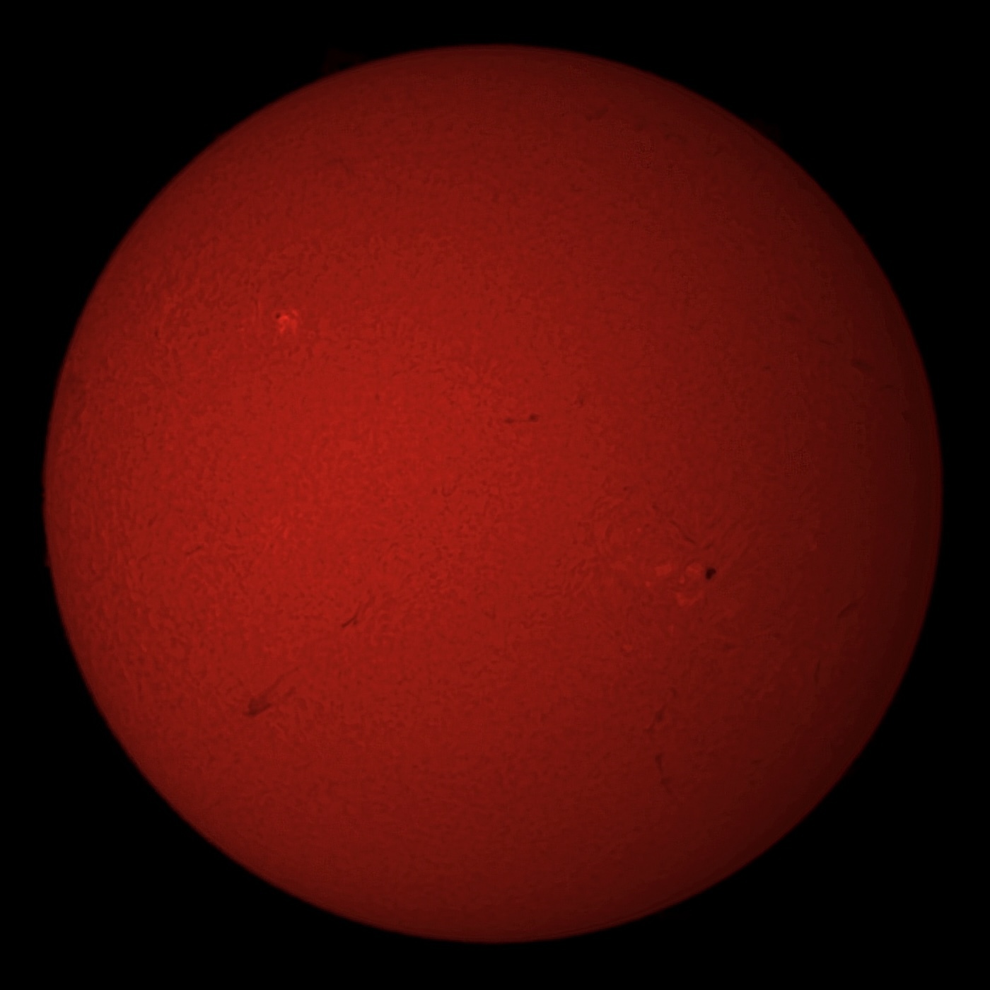01/13の太陽です。今日の太陽は波打つ感じで解像度が上がりませんでした。上空の大気が不安定だったのでしょう。
