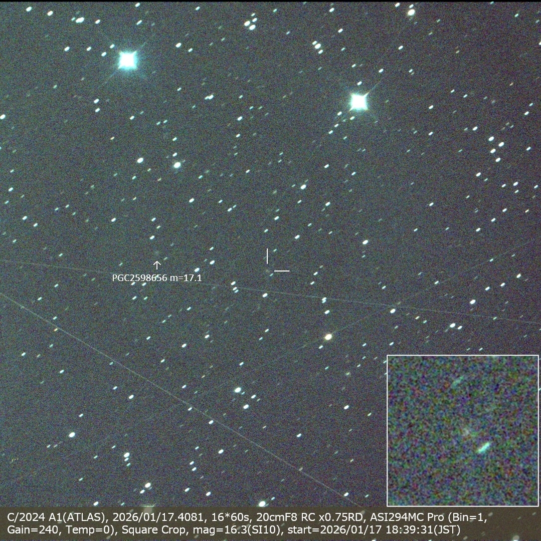 C/2024 A1(ATLAS), 2026/01/17.4081, 16*60s, 20cmF8 RC x0.75RD, ASI294MC Pro (Bin=1, Gain=240, Temp=0), Square Crop, mag=16.3(SI10)