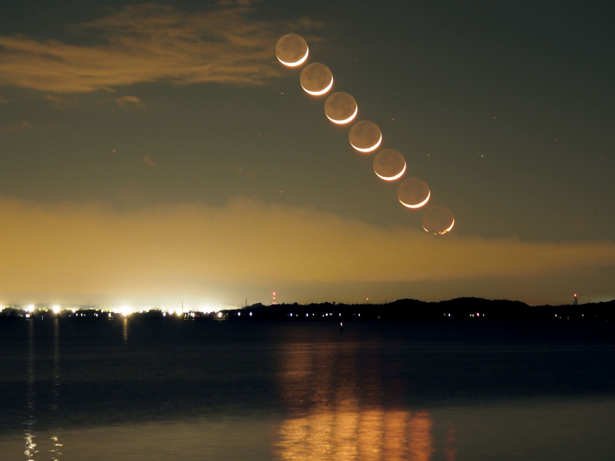銀河鬼太郎湖畔に沈む月齢2.6