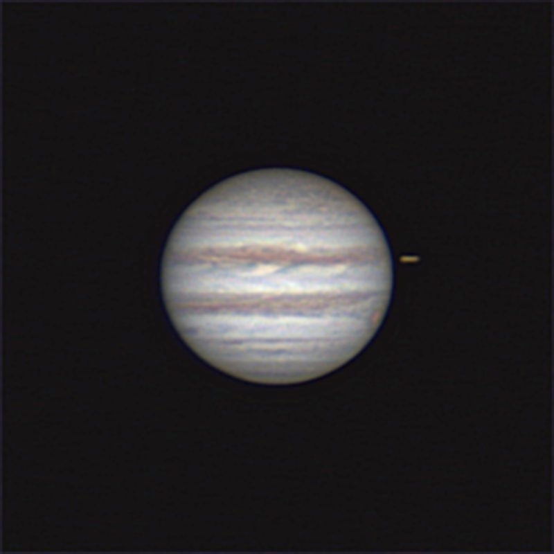 2026年1月25日の木星です。60秒動画10セットを Derotationで合成してから Wavelet処理しました。この冬一番の寒気の流入でしたが、シーイングはほぼベストでした。大赤斑が端に見えていて、衛星イオが線状に写っています。