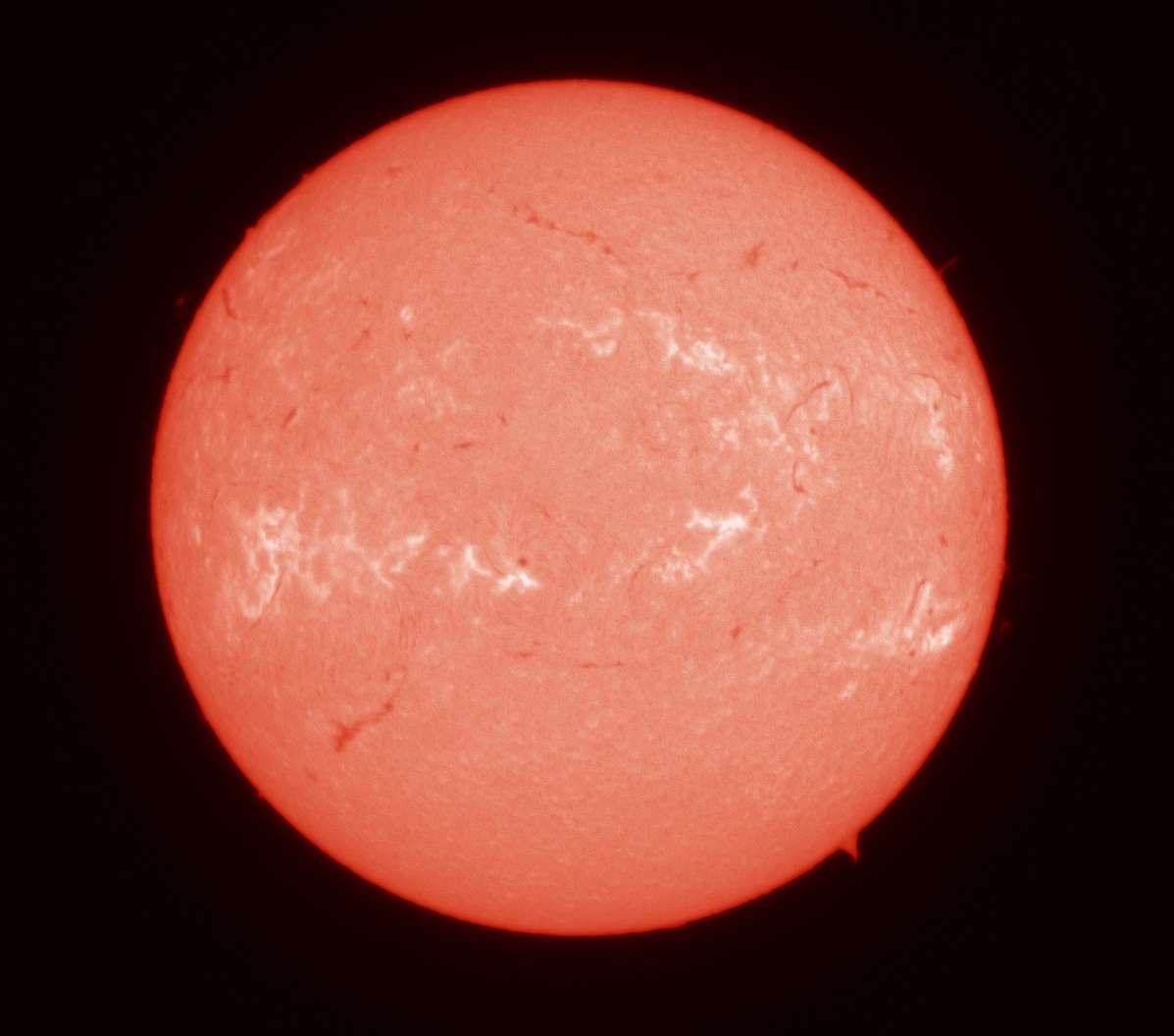 雪がチラつき雲の往来が激しい寒気の中、ボケボケの太陽画になりました。