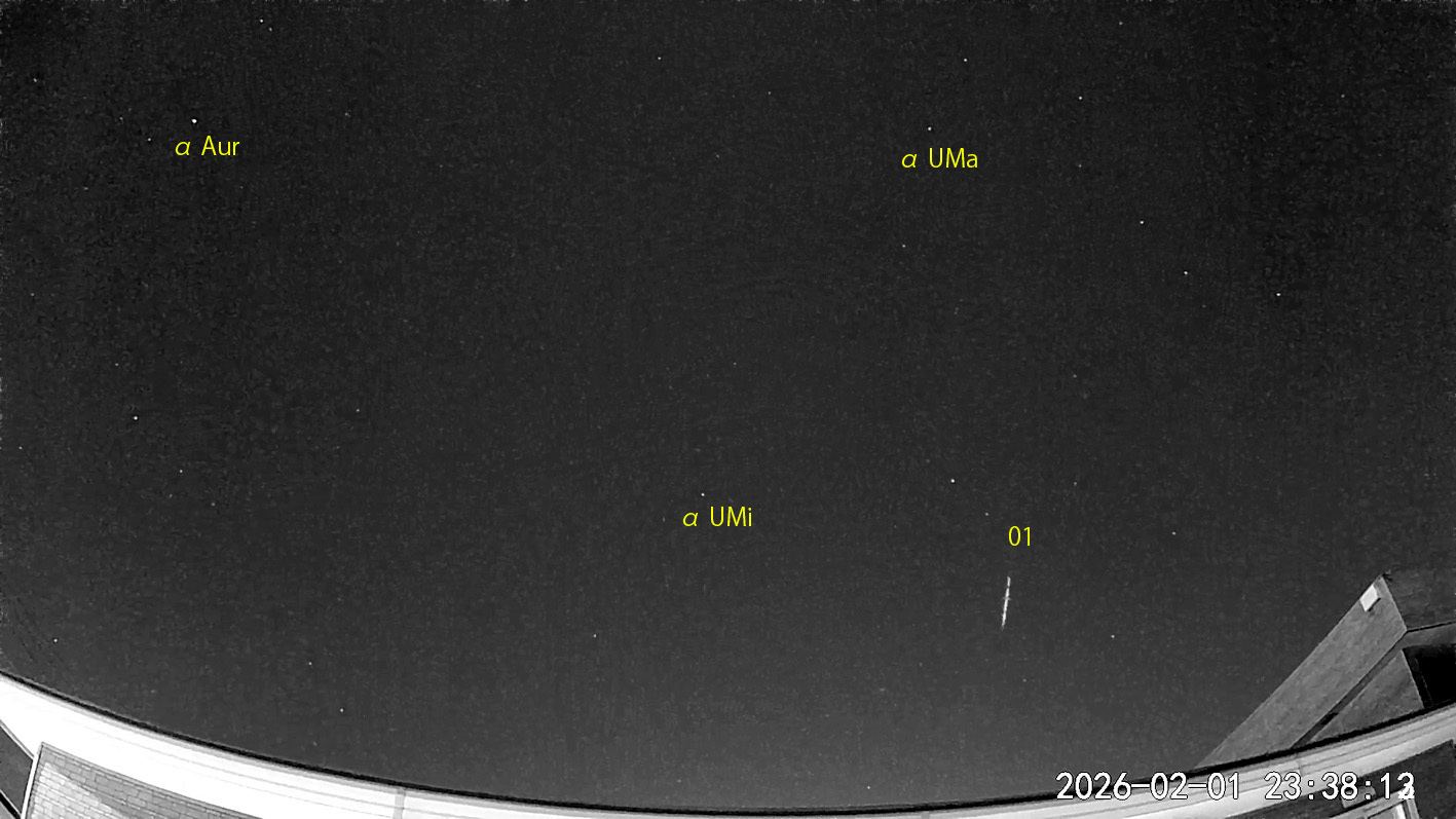 23:38の1コマを処理しました。17:30頃から撮影して22時頃からようやく雲がなくなりました。 出現した順に数字と記号を始点付近に記入。tは痕traceあり。
