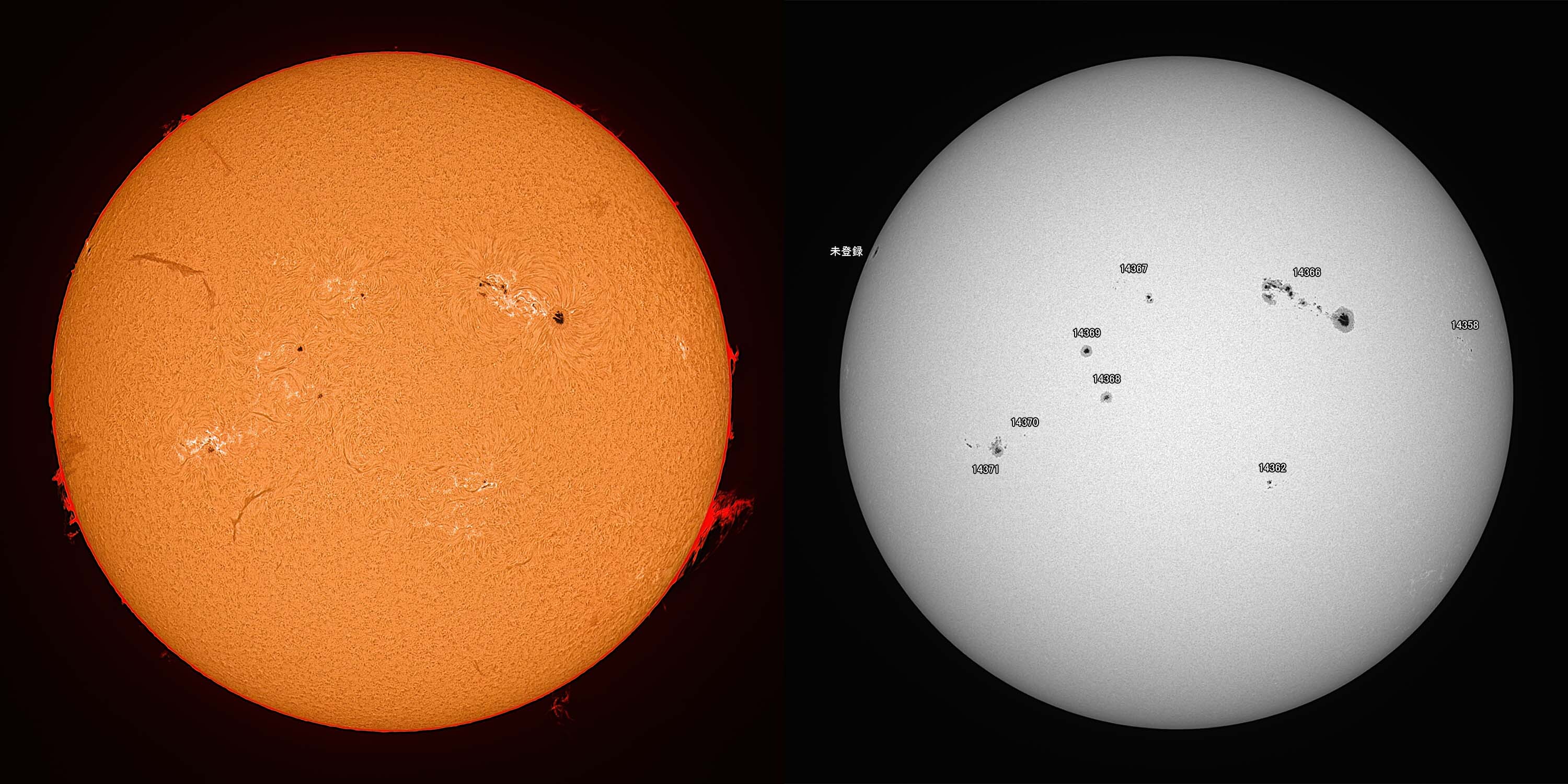 光球面:FireCapture、ROI 3600x2400、Gain 100、2.1msec x1000、撮影時間 31秒/プロミネンス:FireCapture、ROI 3600x2400、Gain 300、2.1msec x1000、撮影時間 31秒