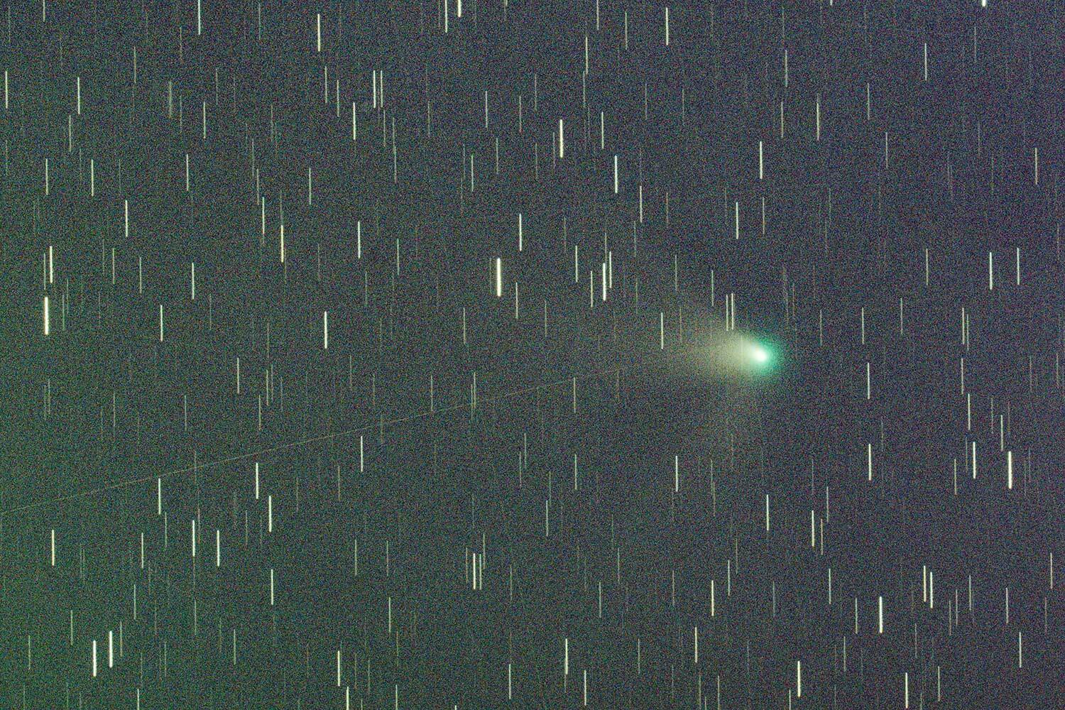 阿蘇米塚駐車場にて撮影しました。動きが早いのでPHD2でメトカーフガイドを行った180s11枚から強調少しトリミングしています。斜め上に淡く伸びているイオンテイルらしき尾がようやく写ってくれました。ダストテイルは左と斜め下に分かれている様子です。