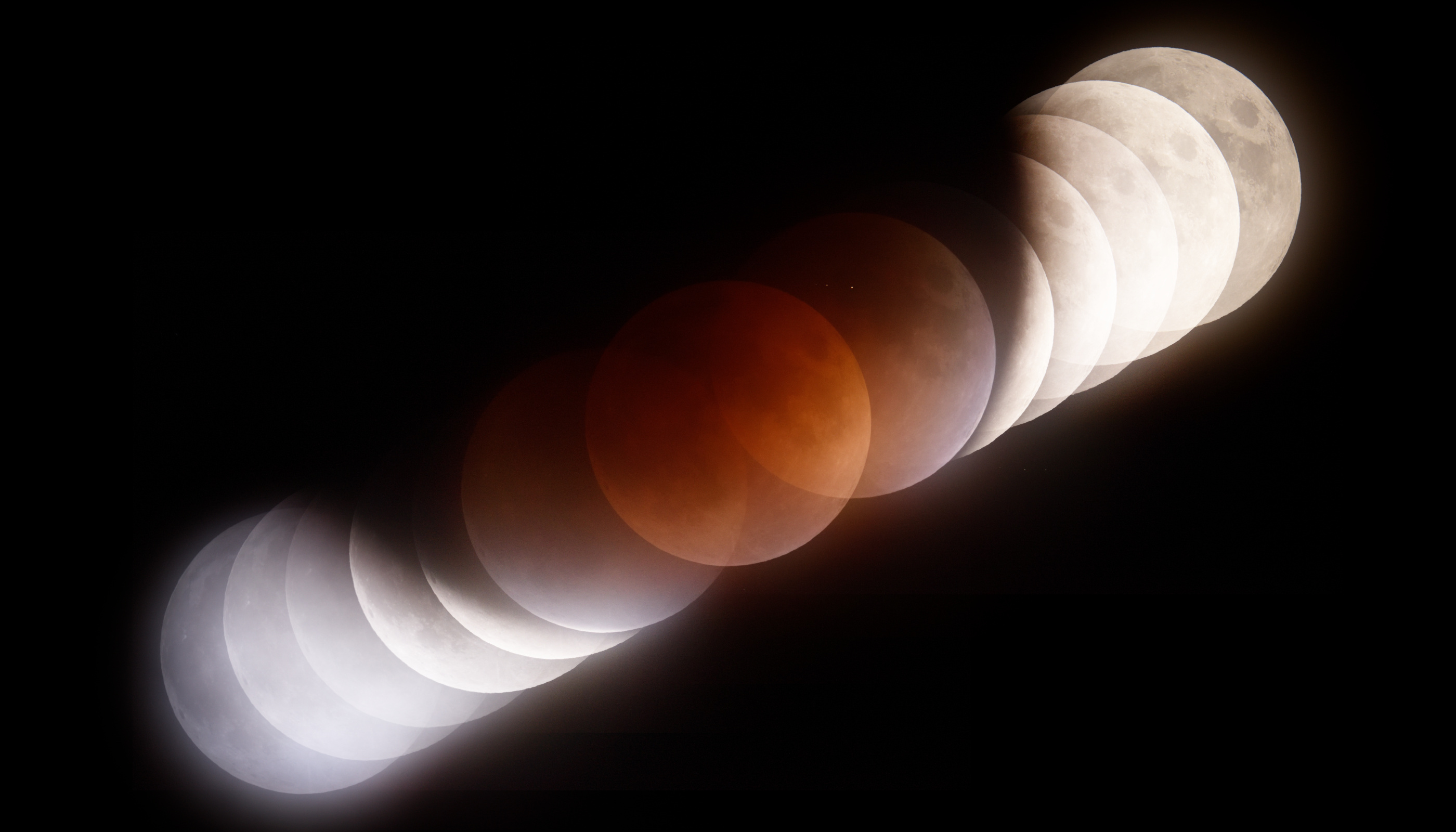 皆既月食(2026年3月3日)の連続写真 宮崎で