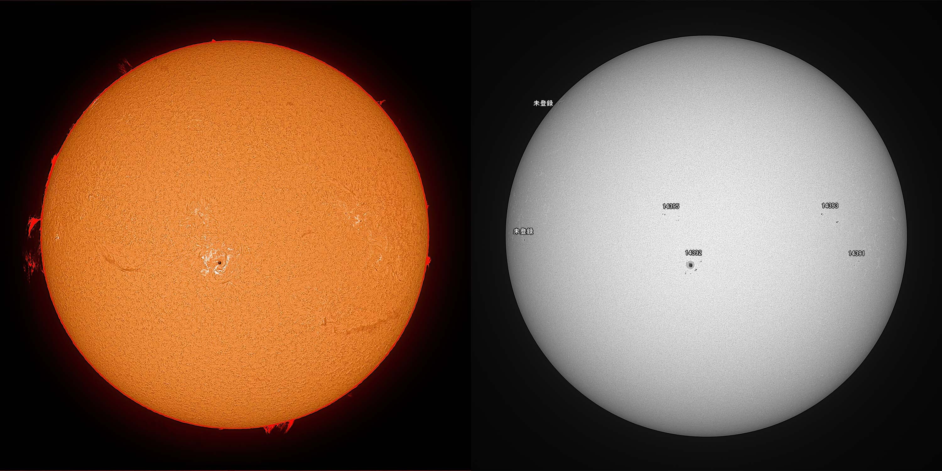 光球面:FireCapture、ROI 3600x2400、Gain 100、2.4msec x1000、撮影時間 31秒/プロミネンス:FireCapture、ROI 3600x2400、Gain 300、2.4msec x1000、撮影時間 31秒