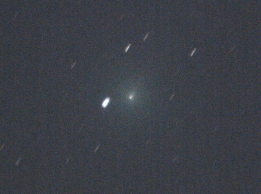 月が煌々と輝いていましたが、スワン彗星は小さいながらもかなり明るく写りました。右上の方に尾を引いているようです。