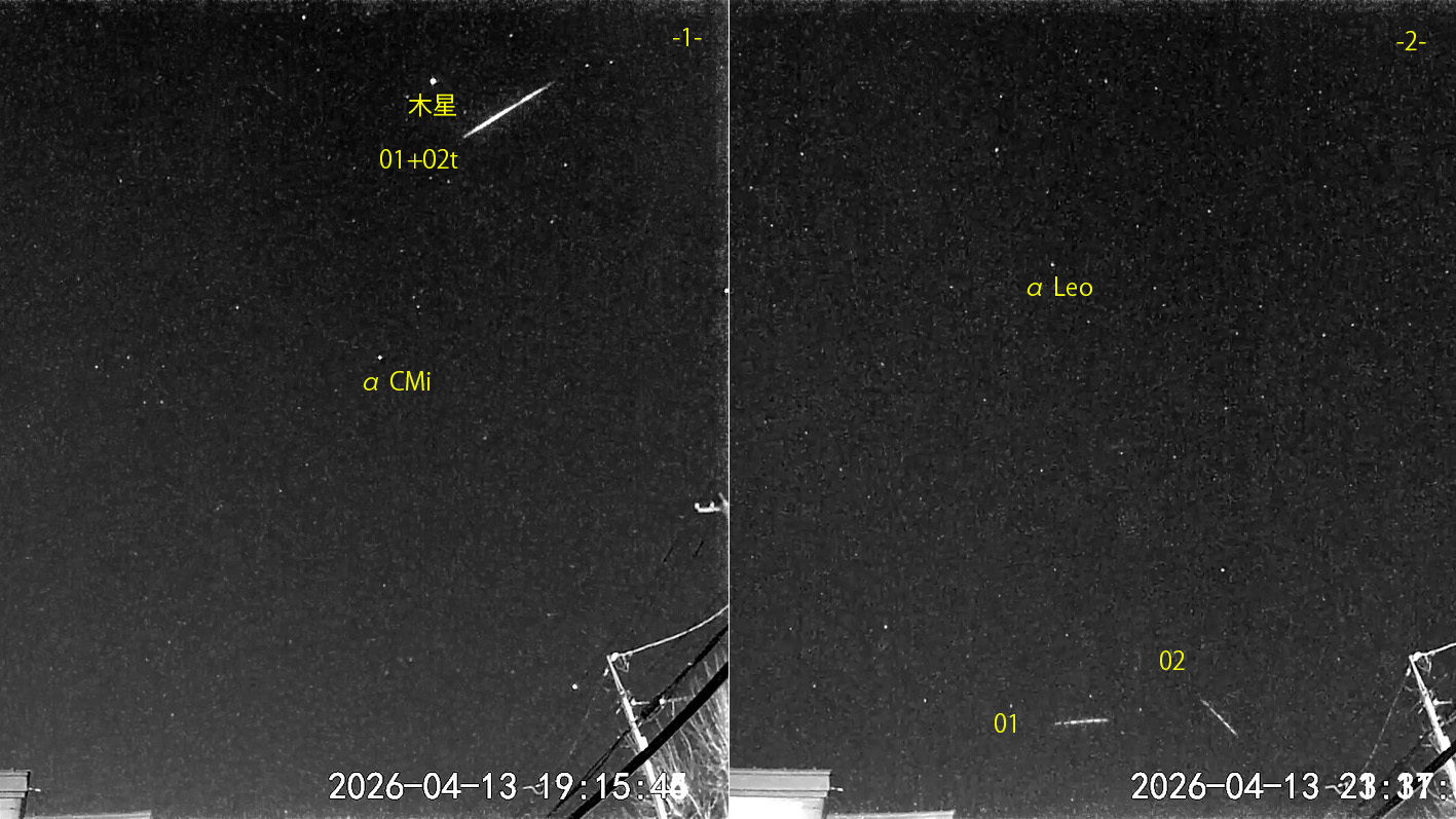 1) 19:15から約1.5時間の2コマを、2) 21:11から約1.5時間の2コマを処理しました。昨夜から快晴続く。 出現した順に数字と記号を始点付近に記入。tは痕traceあり。