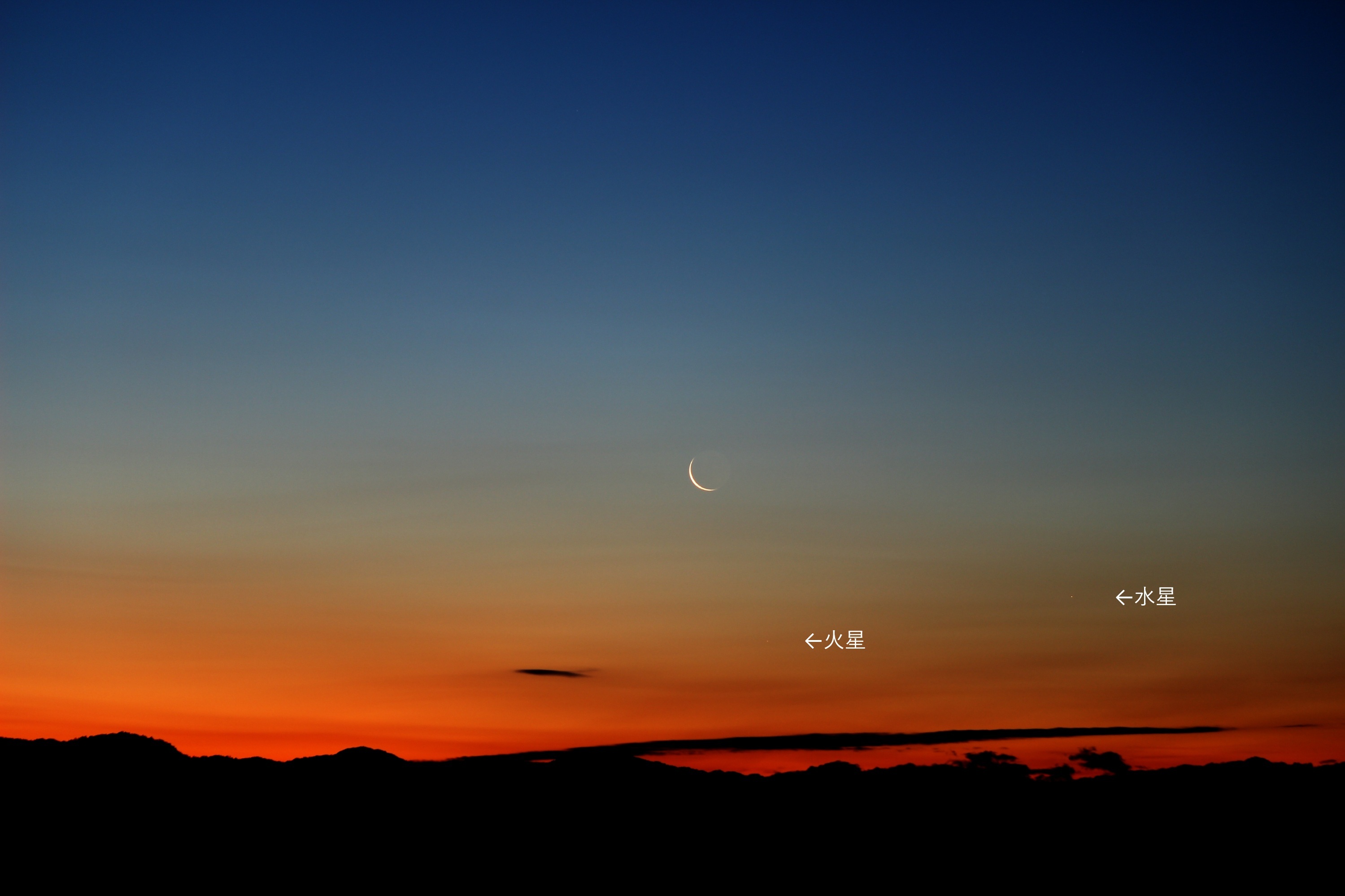 二十九日月(月齢27.8)と水星、火星との接近(2026.04.16)
