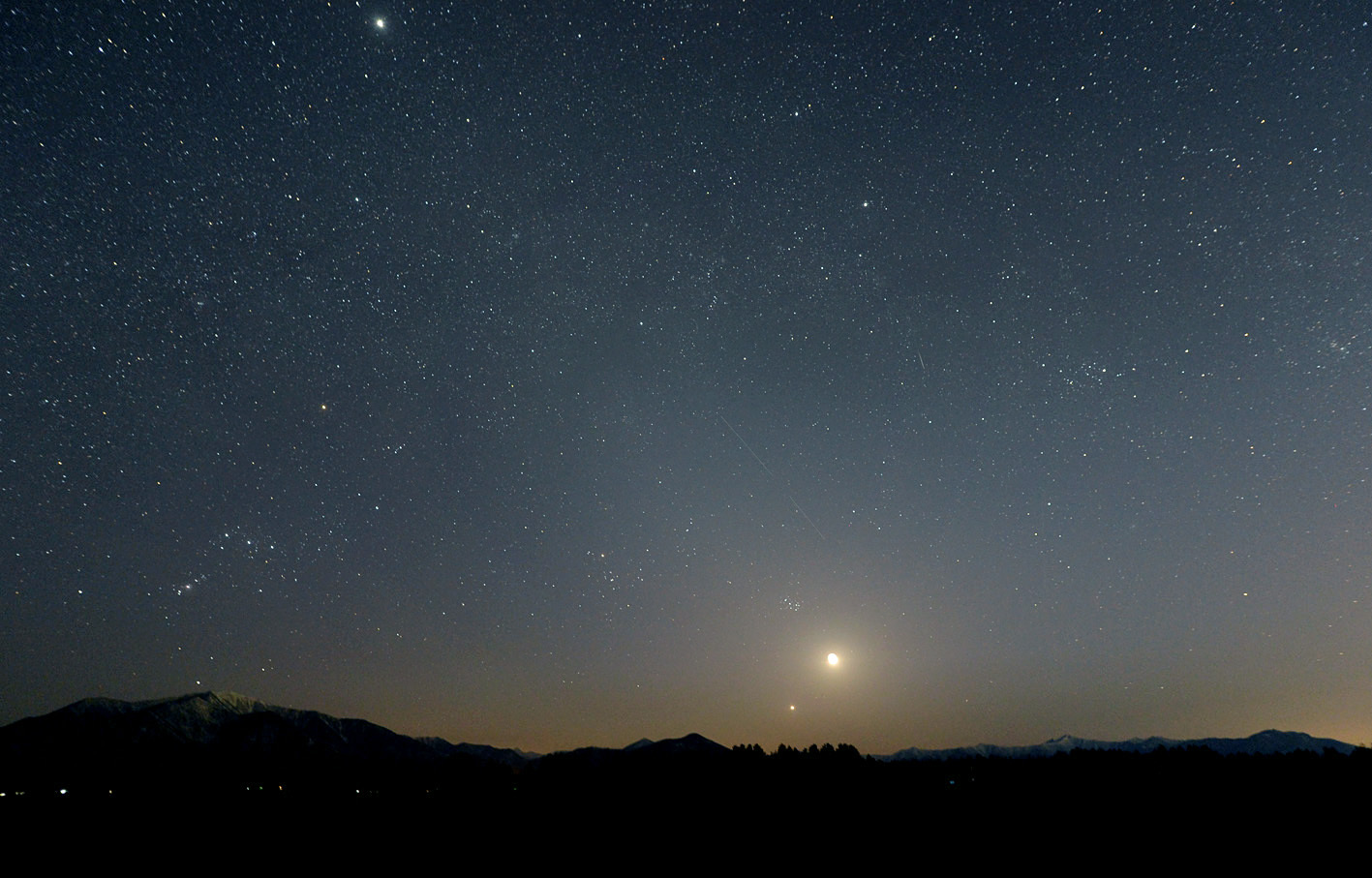 西に傾いた冬の星座 月と金星&木星