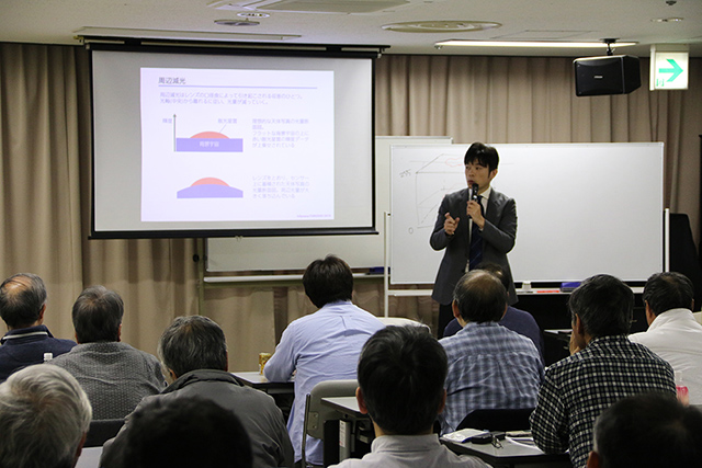 講座は「周辺減光」や「光害」がどういうことなのかを図で示した後、それらを改善するための「フラット処理」が、内部でどんな理屈で計算しているのかを解説するところからスタートしました。そのうえで「ステライメージ」での周辺減光・カブリ補正のやり方を解説、またフラット補正に特化したソフト「FlatAidePro」での処理の仕方も紹介しました。