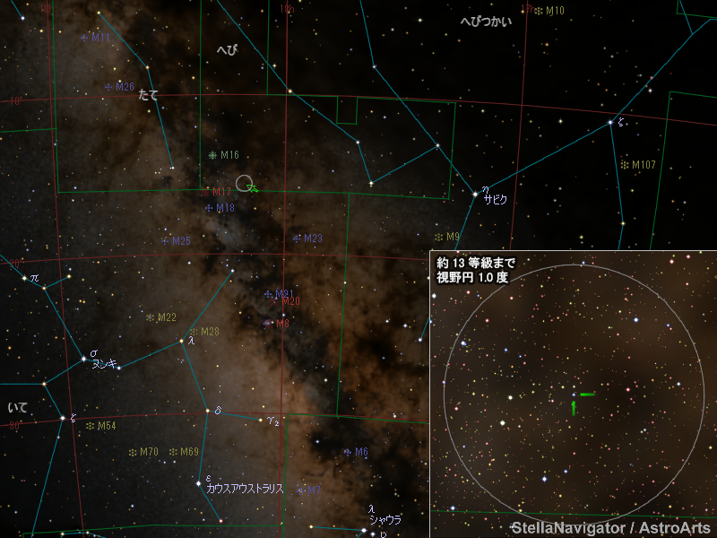 赤経 18h10m42.32s 赤緯 -15°34′18.6″(2000年分点)