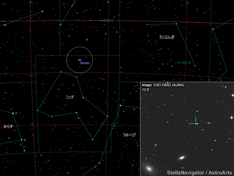 山形県の板垣公一さんが2月17日18時26分ごろ(世界時。日本時では18日3時26分ごろ)、コップ座の方向に16.9等の新天体を発見した。天体の位置は以下のとおり。