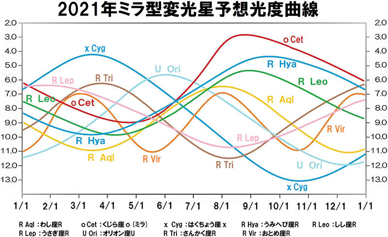 2021年の主要なミラ型変光星の光度変化予測