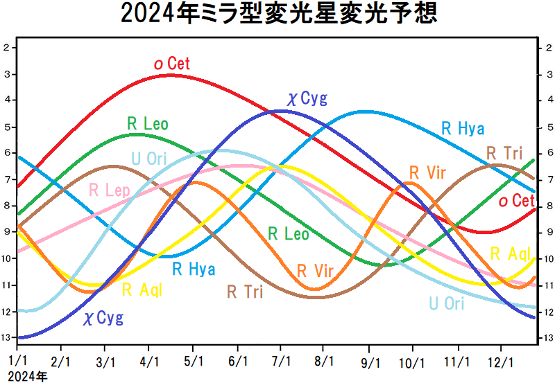 2024年の主要なミラ型変光星の光度変化予測